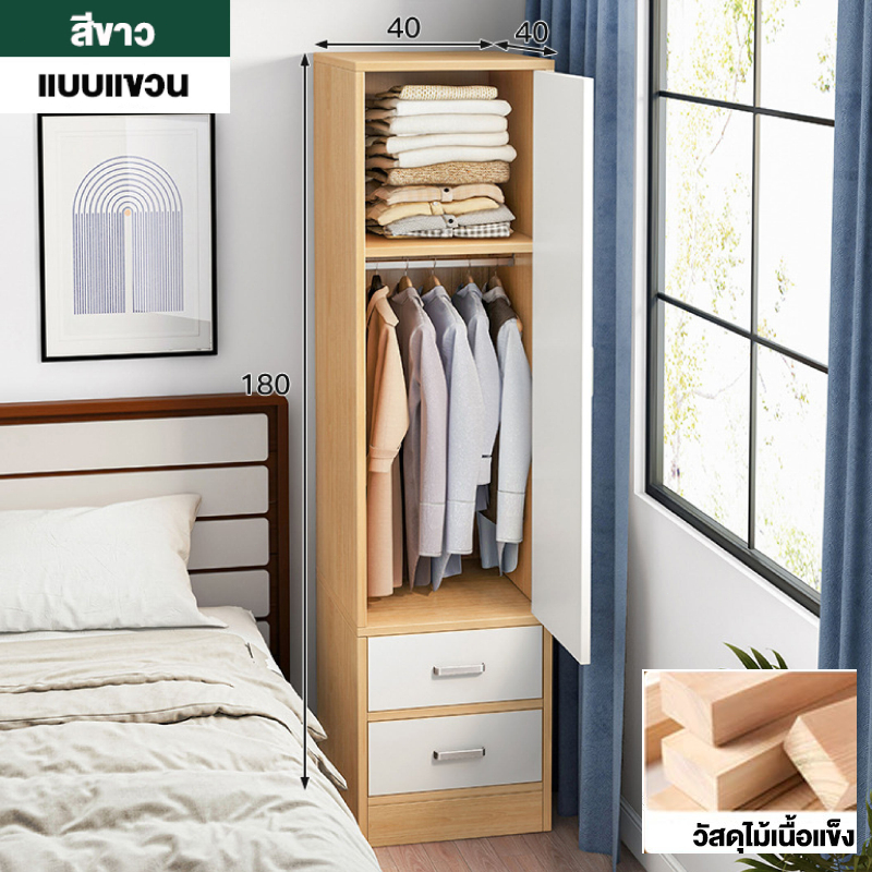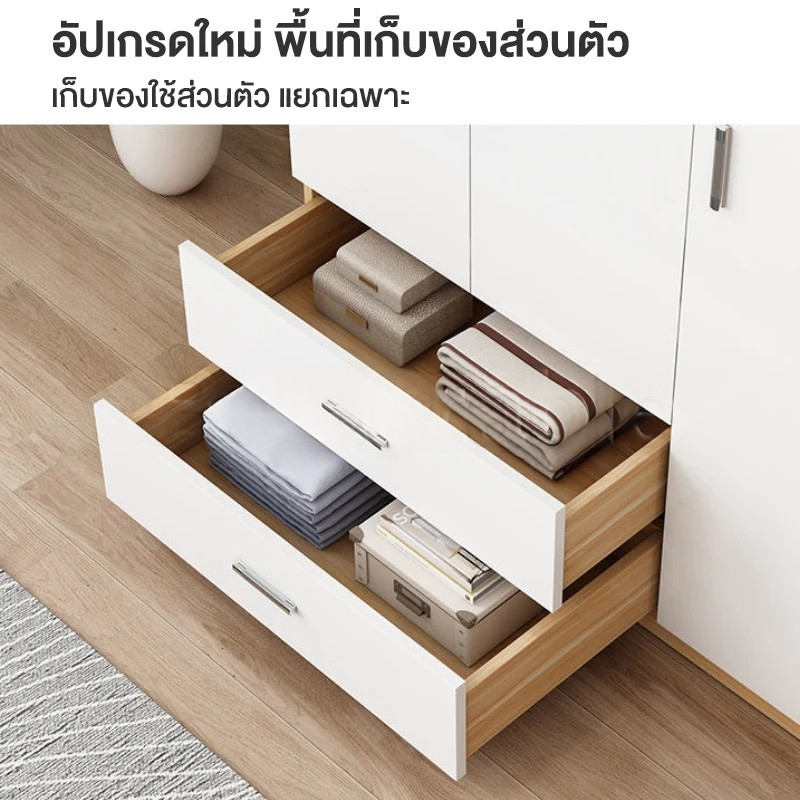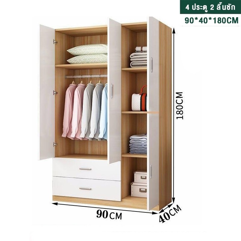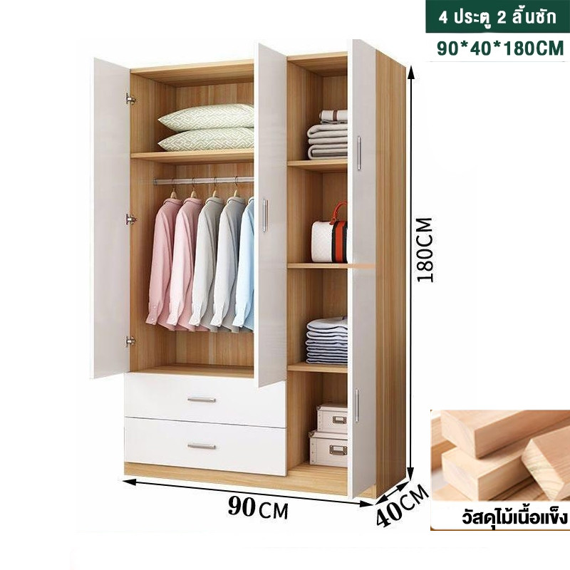 ตู้เสื้อผ้า ตู้เสื้อผ้าไม้ บานเปิด 4 ประตู โซนแขวนเสื้อ ตู้เสื้อผ้ามีลิ้นชัก ตู้ใส่เสื้อผ้า จุของได้เยอะ