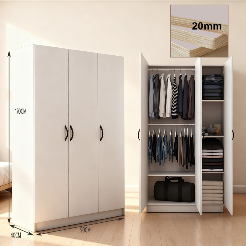 ตู้เสื้อผ้า ตู้เสื้อผ้าไม้ 3 ประตู wardrobe คุณภาพดี ราคาถูก แข็งแรง เก็บของได้เยอ ะ ตู้เสื้อผ้า