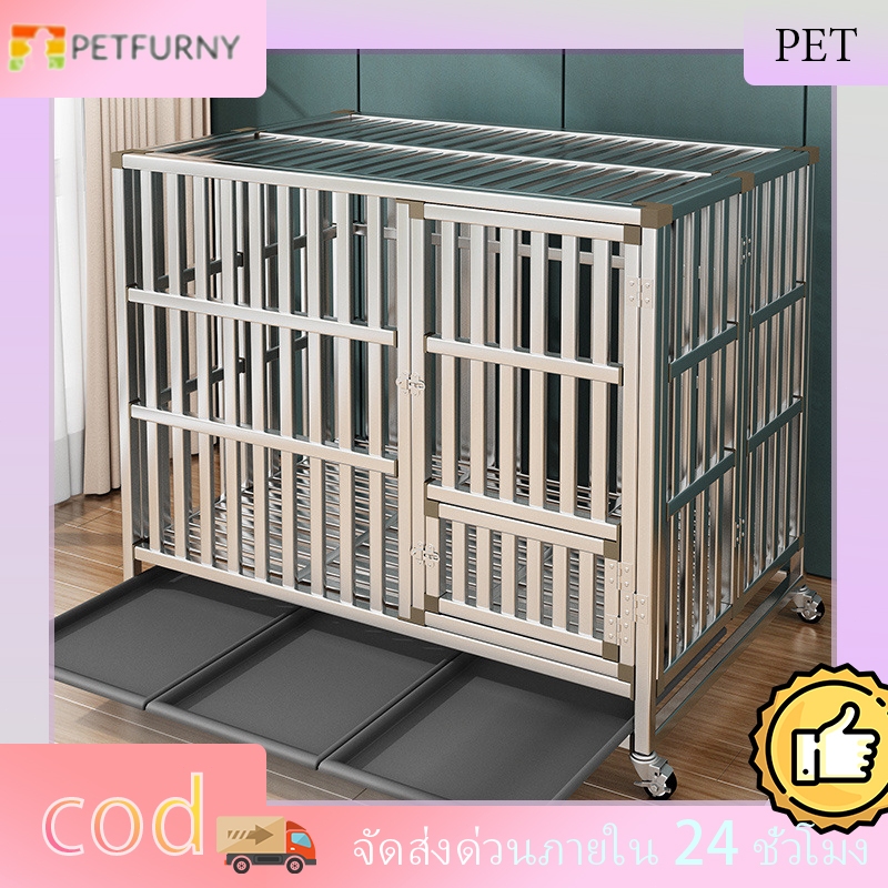 กรงสุนัขขนาดใหญ่กลาง และสแตนเลสพับกรงสุนัขหนา ที่มีประตูป้อน