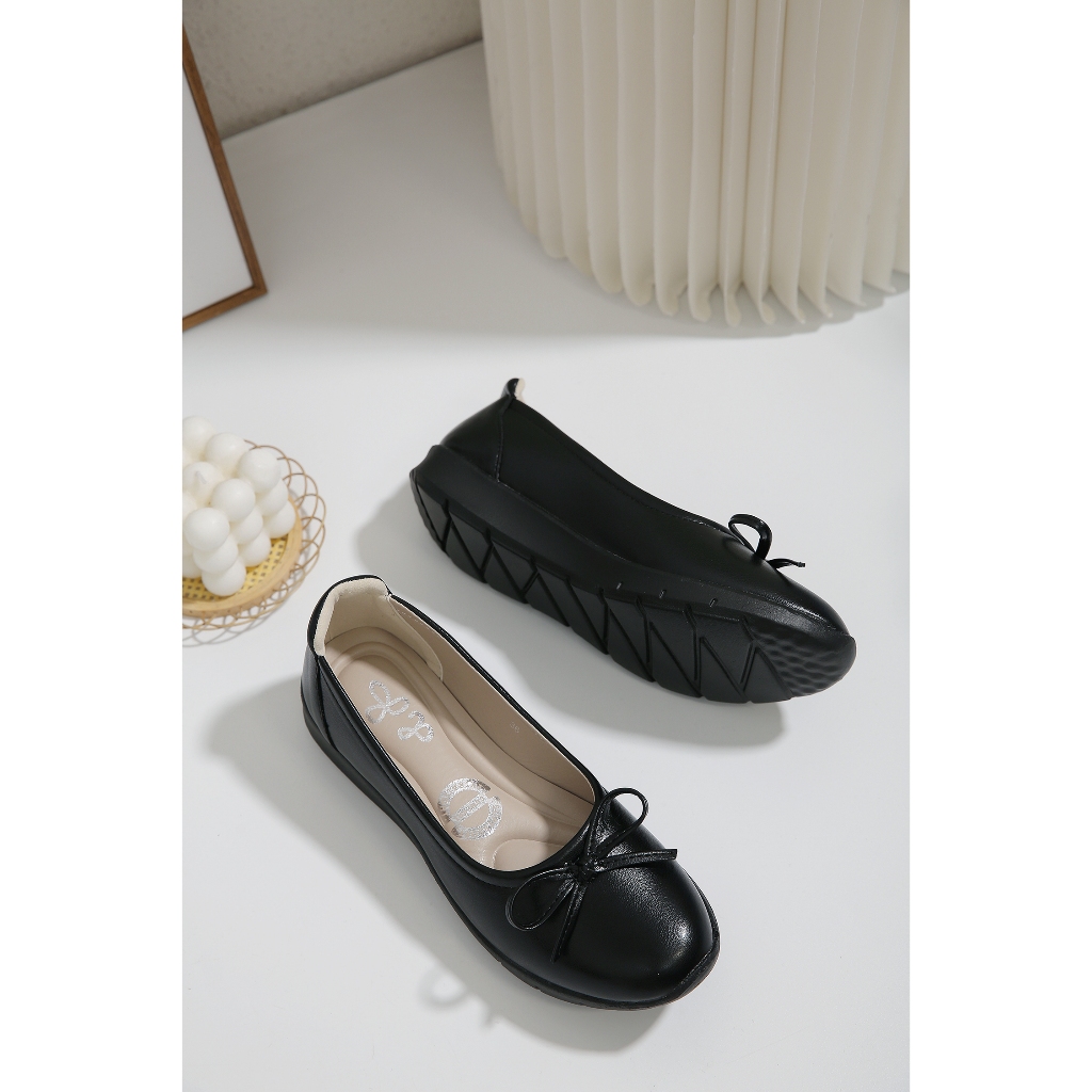 Soft touch-02 (PRE ORDER เฉพาะสีดำ5-10วัน) รองเท้านุ่มมากมีโบว์ใส่สบายจริงๆ แม่ค้าคอนเฟริม ไม่กัดเท้าใส่ยืนนานไม่มีปัญหา