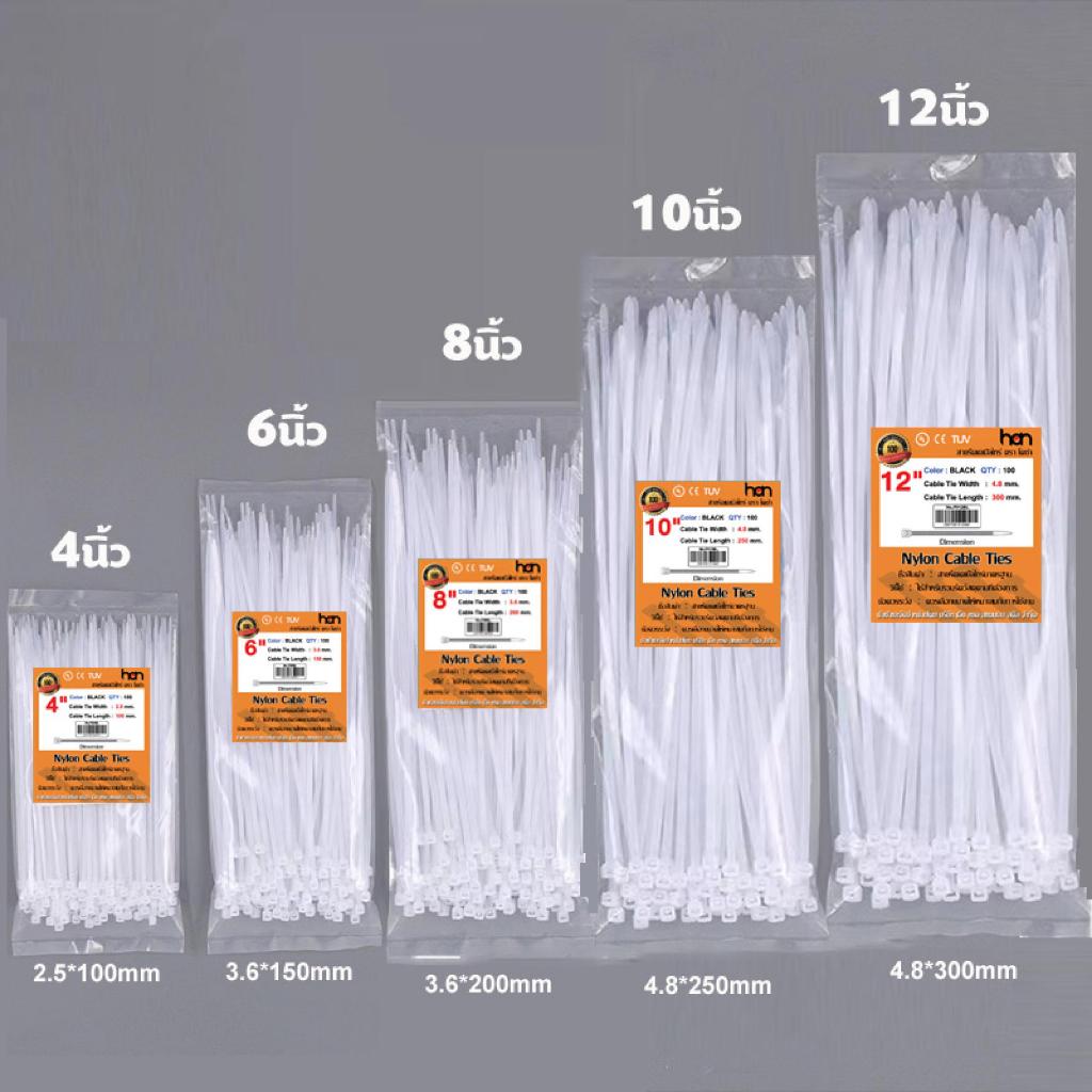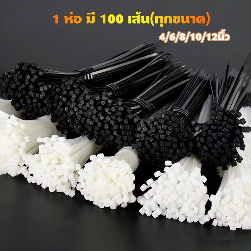 เคเบิ้ลไทร์ 100เส้น Cable Tie 4/6/8/10/12/14/16นิ้ว สายรัดไนล่อน หนวดกุ้ง สายเคเบิ้ลไทร์ Nylon Plastic ขายส่ง จังหวัดปท