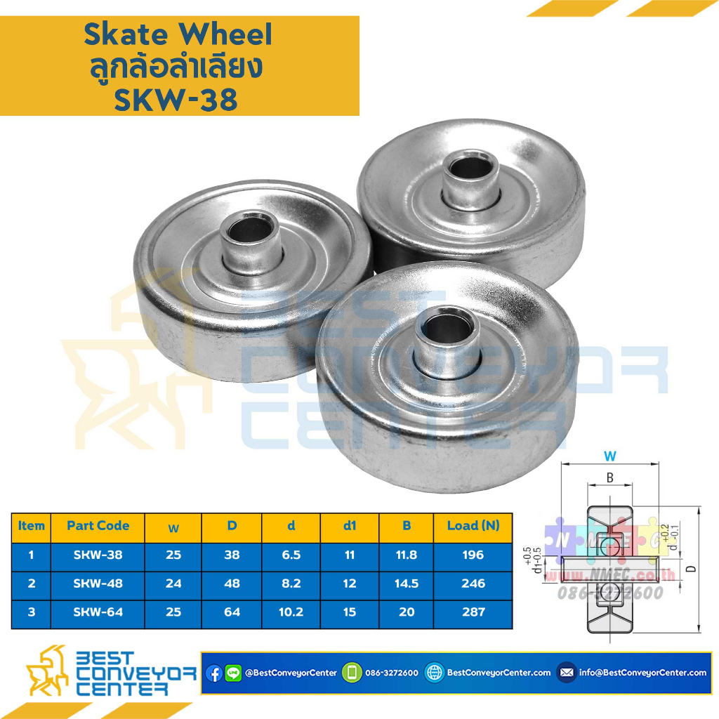 ลูกล้อลำเลียง Skate Wheel ขนาด 38,48,64 mm.
