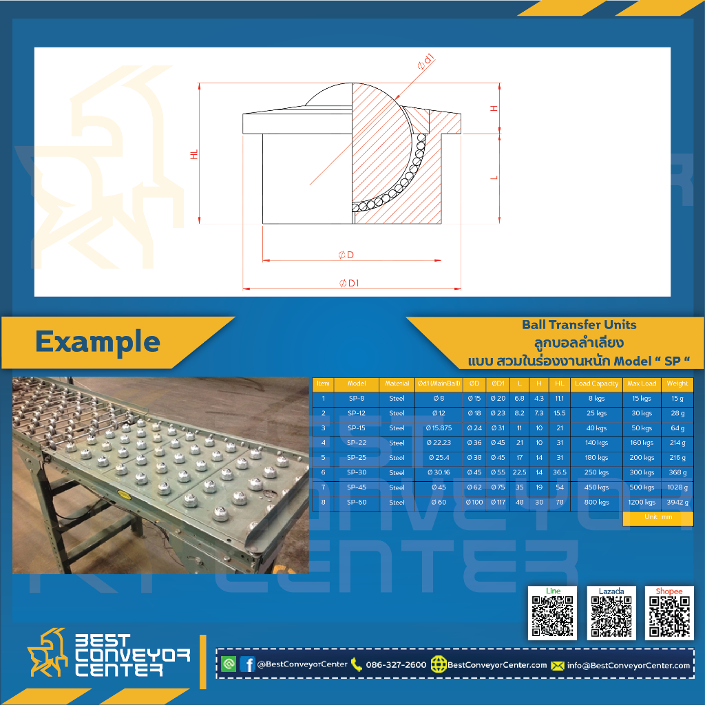ลูกบอลลำเลียง Ball Transfer แบบสวมร่องงานหนัก Heavy Load