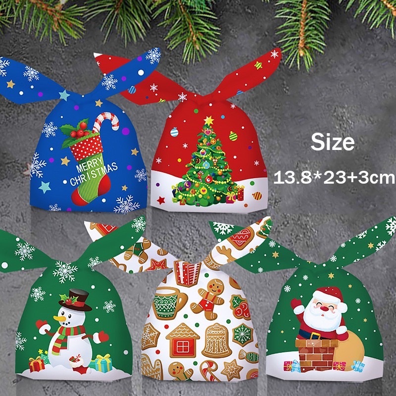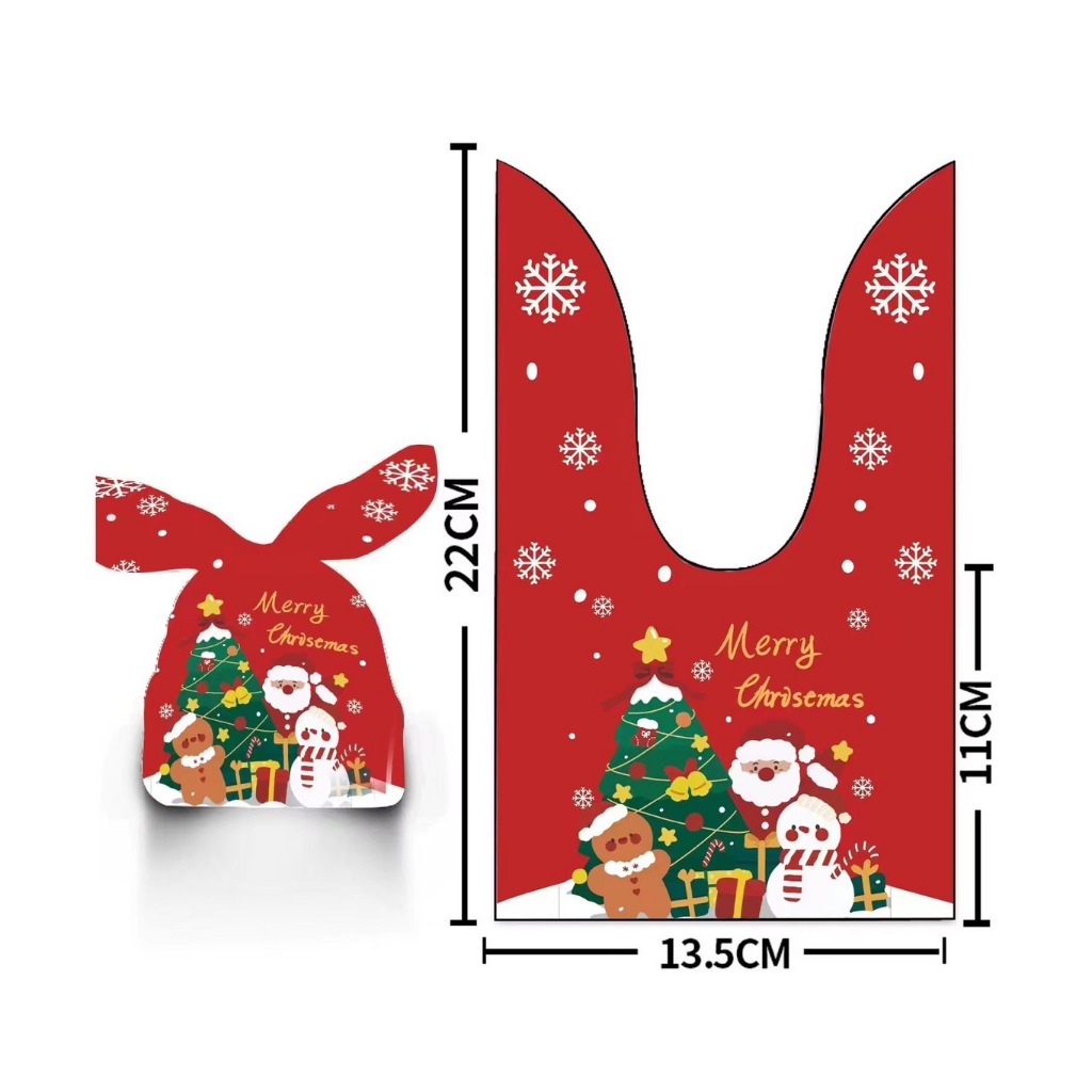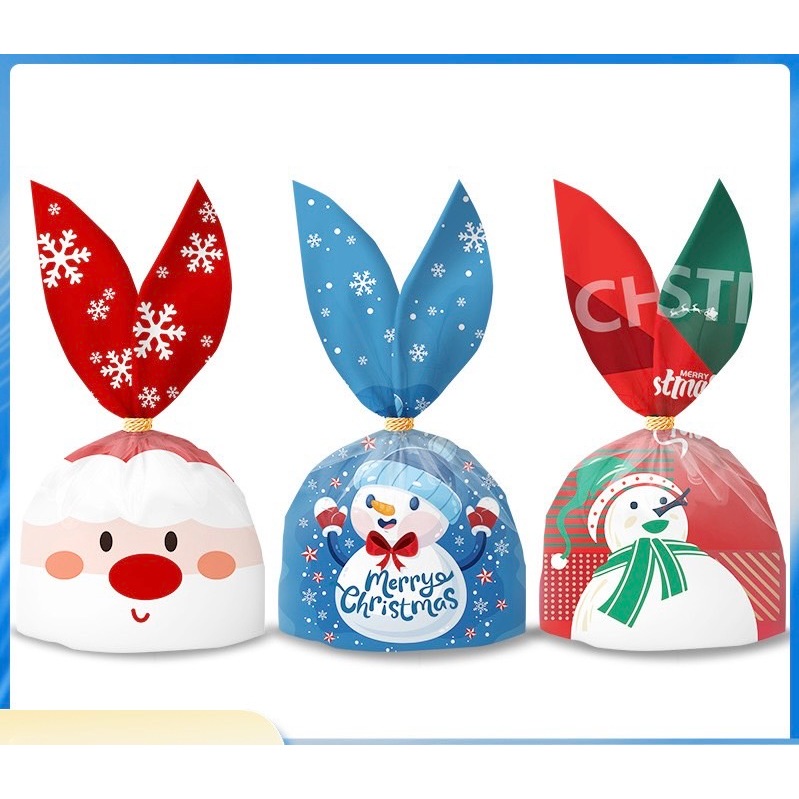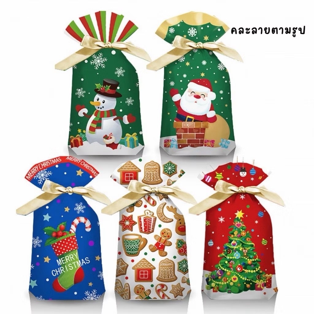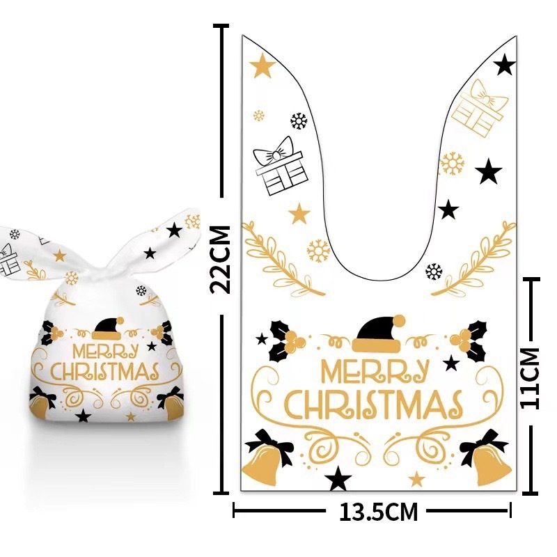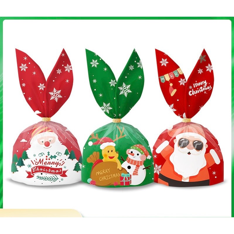 ถุงผูกหูกระต่ายใส่ขนมลายน่ารัก แพ็คประมาณ 5 ใบ ใบมีลายคริสมาสต์นะคะ