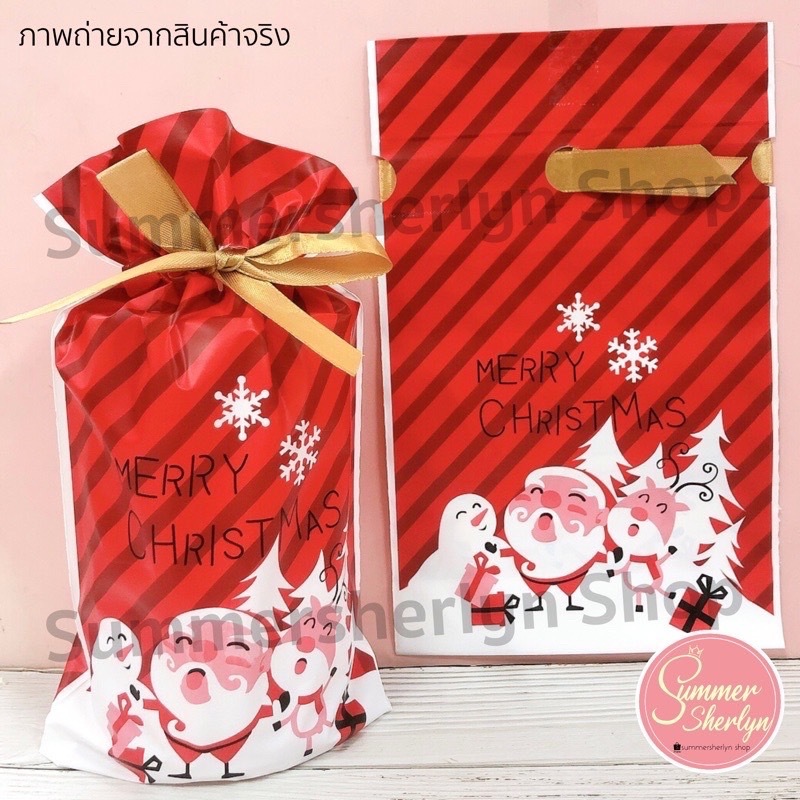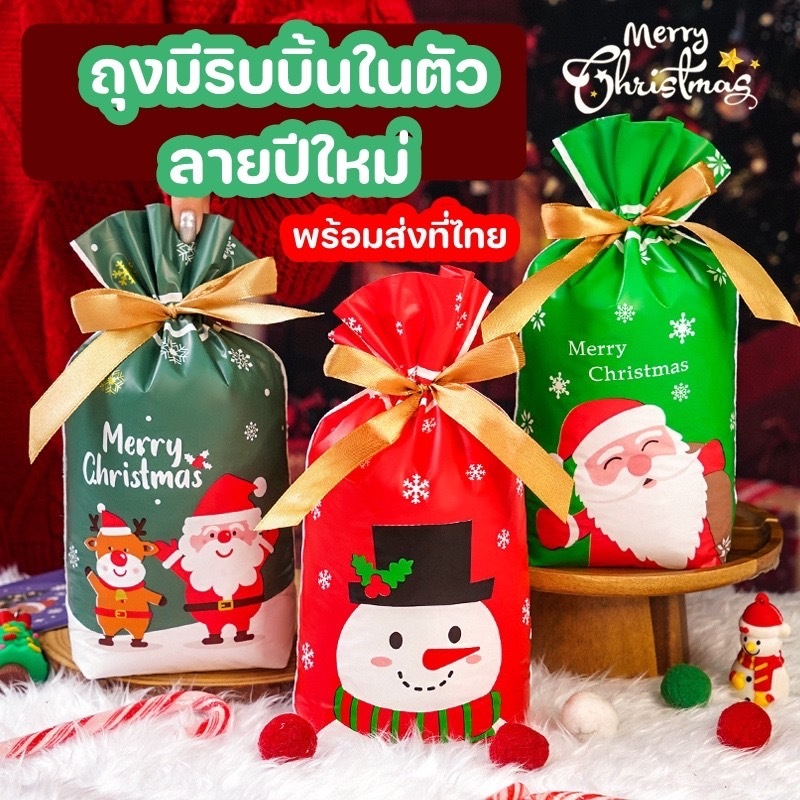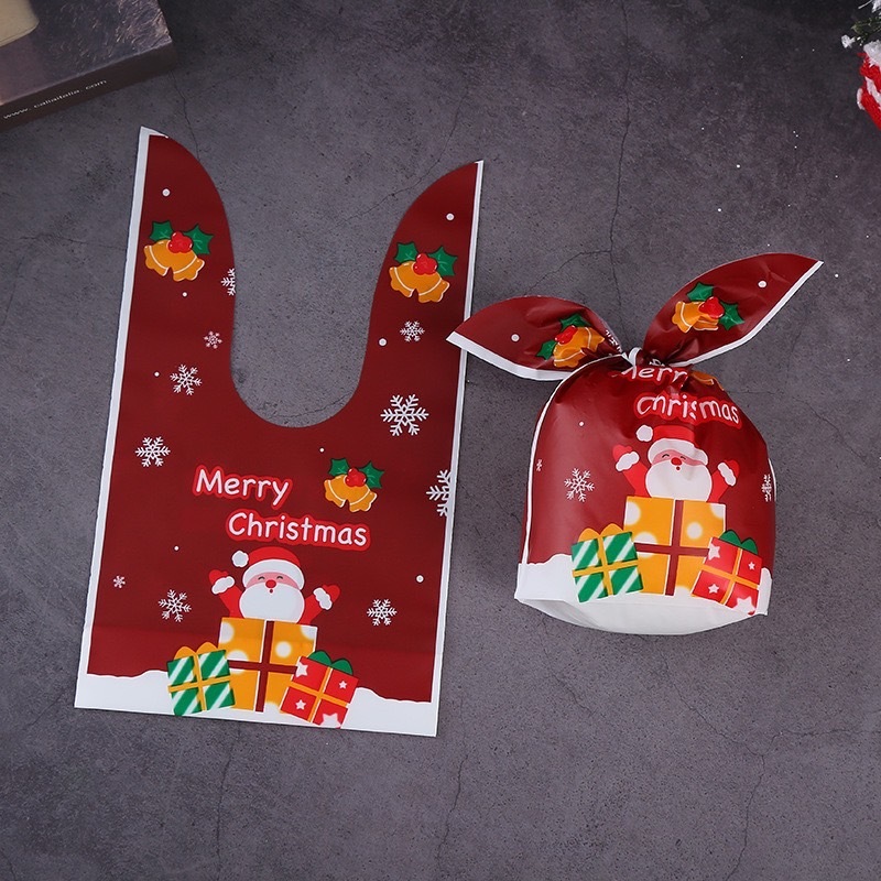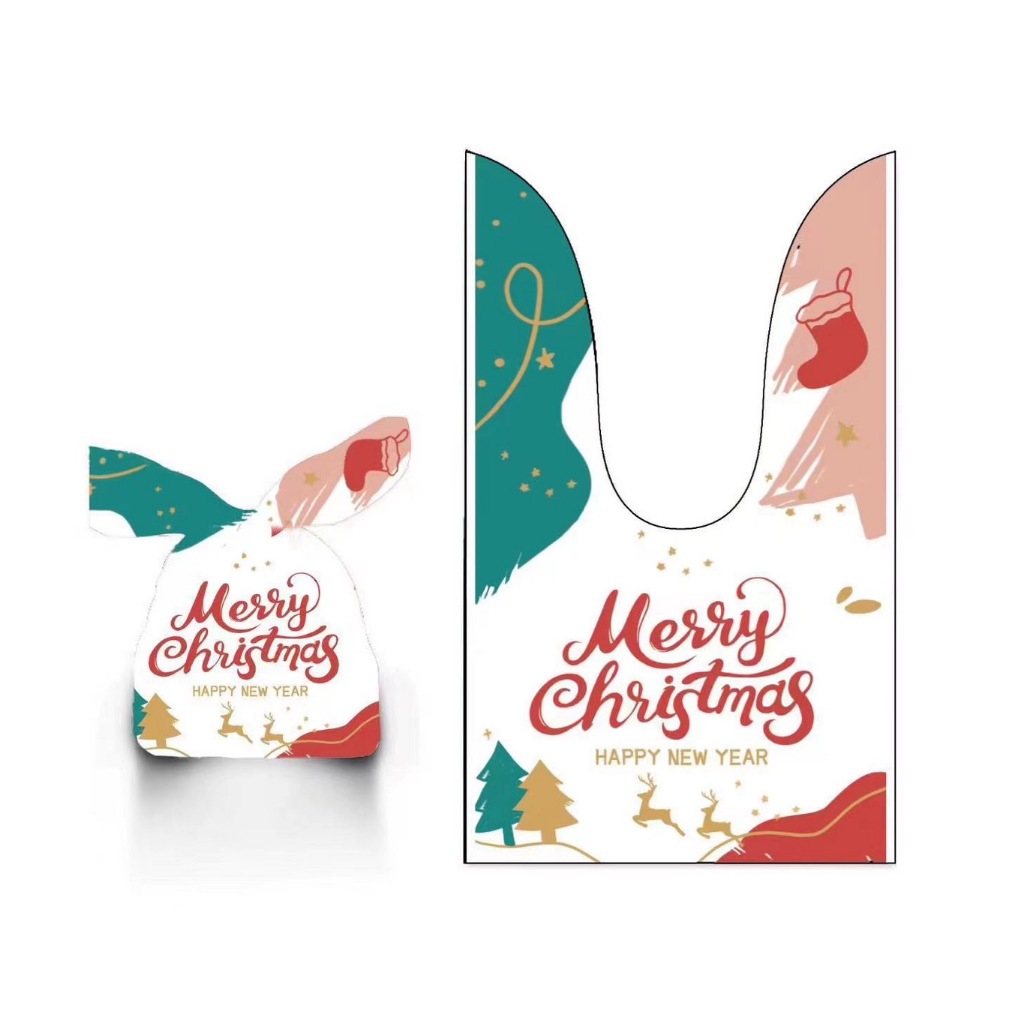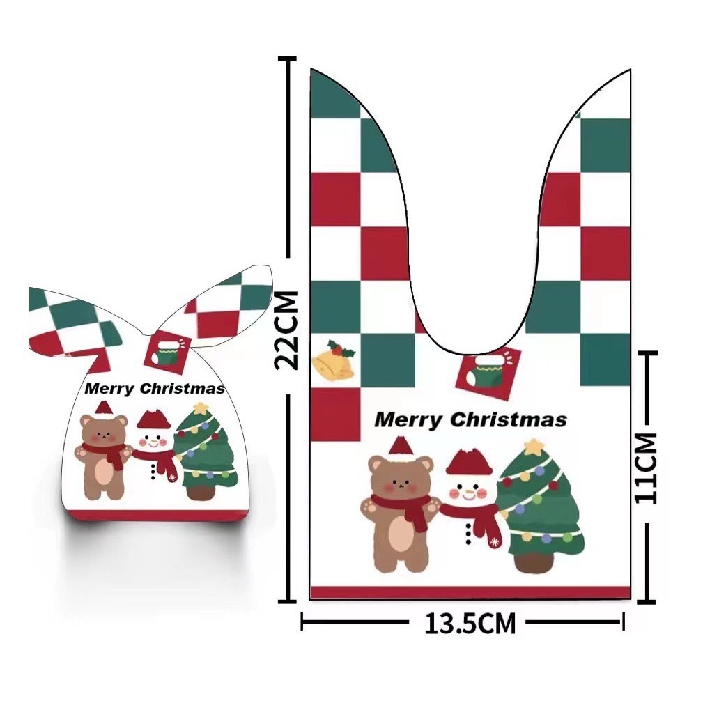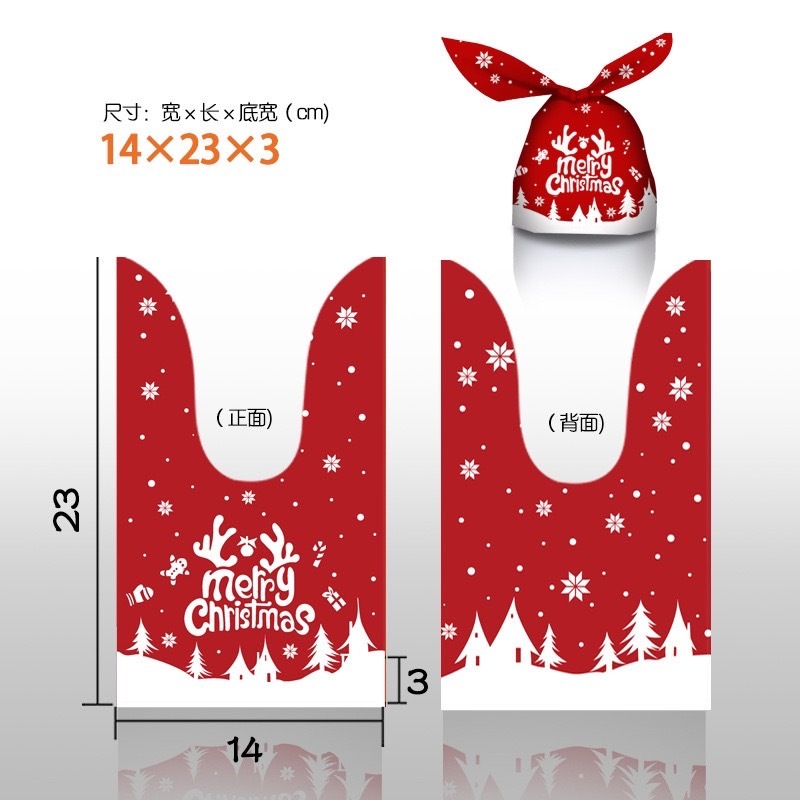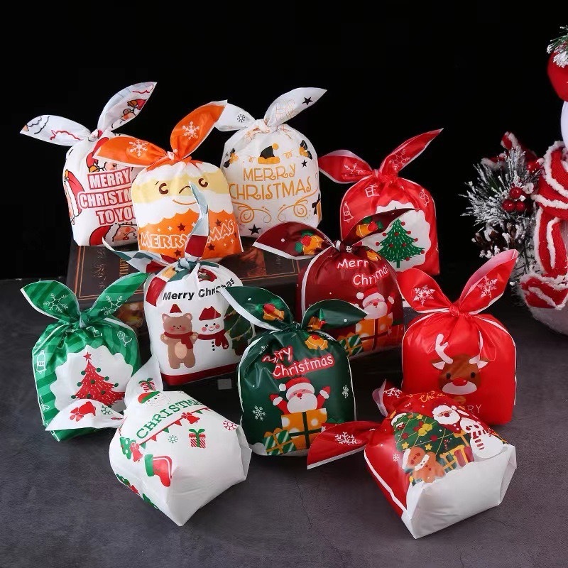 ถุงผูกหูกระต่ายใส่ขนมลายน่ารัก แพ็คประมาณ 5 ใบ ใบมีลายคริสมาสต์นะคะ
