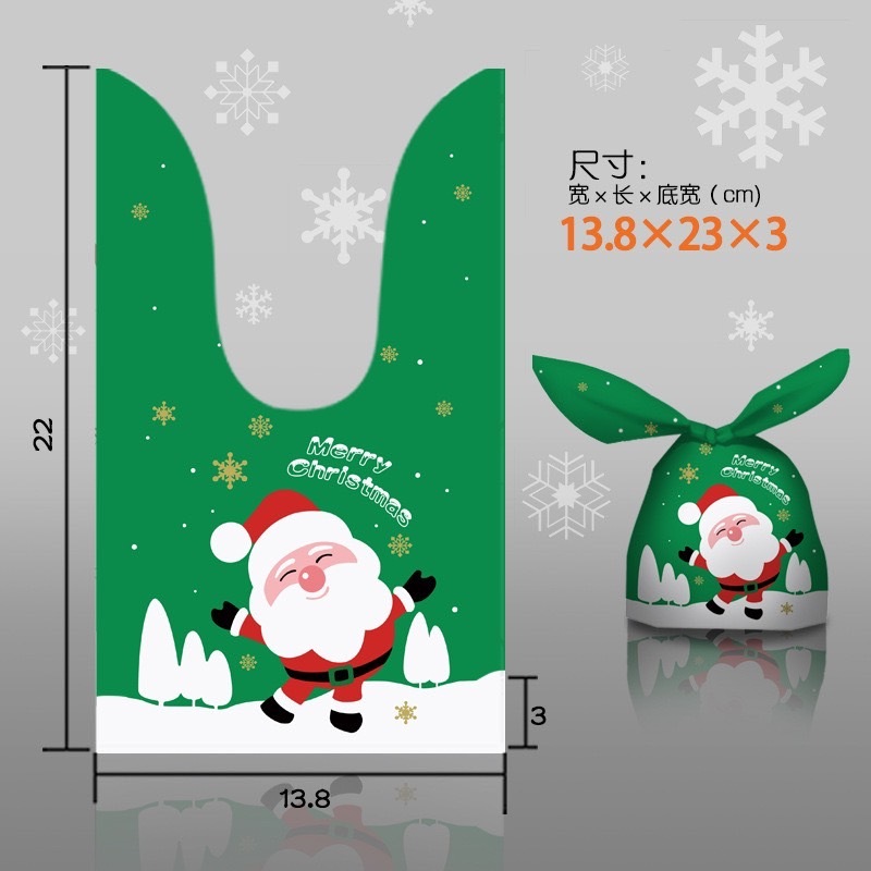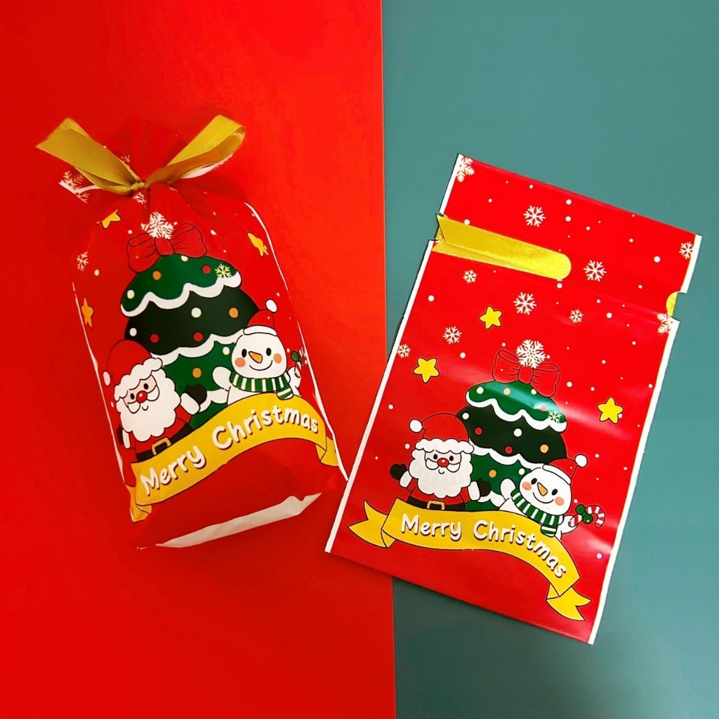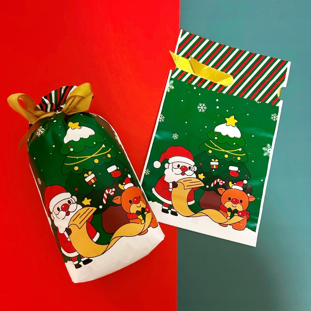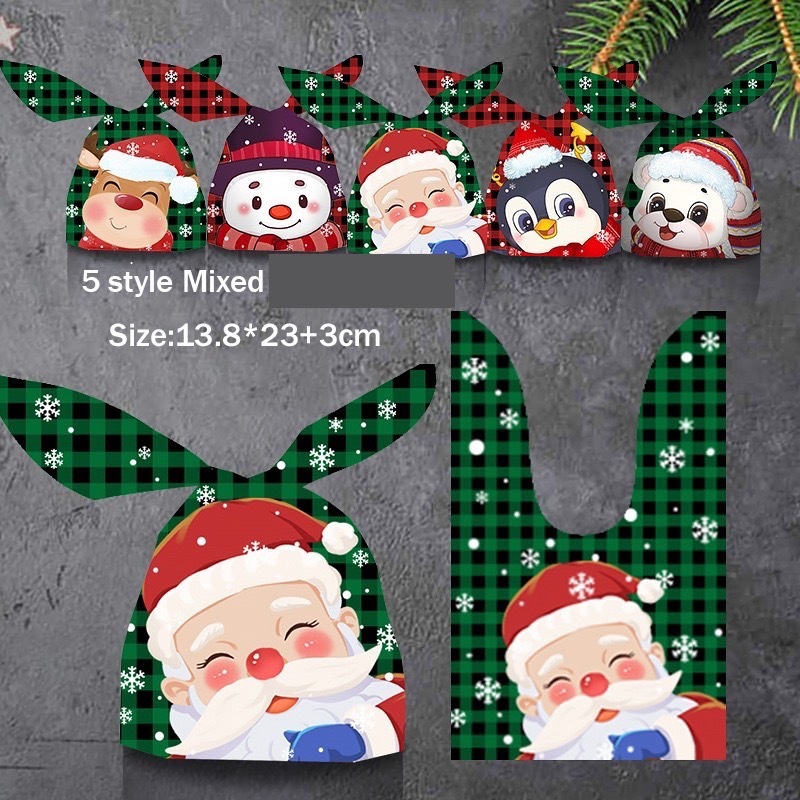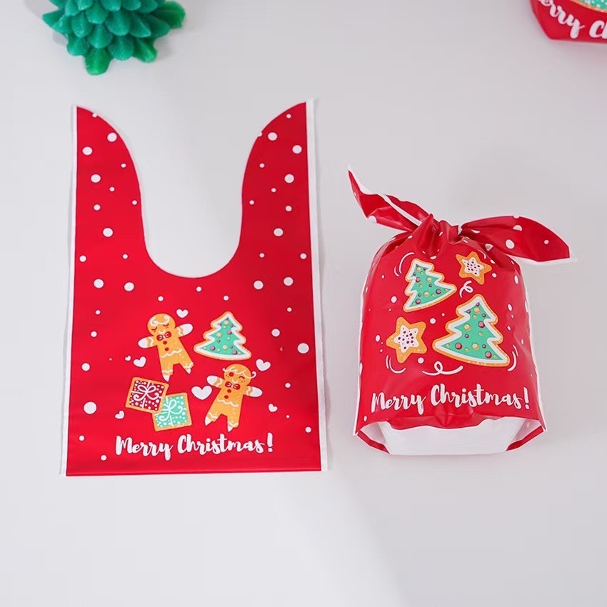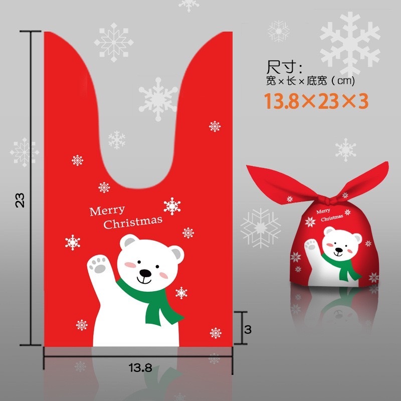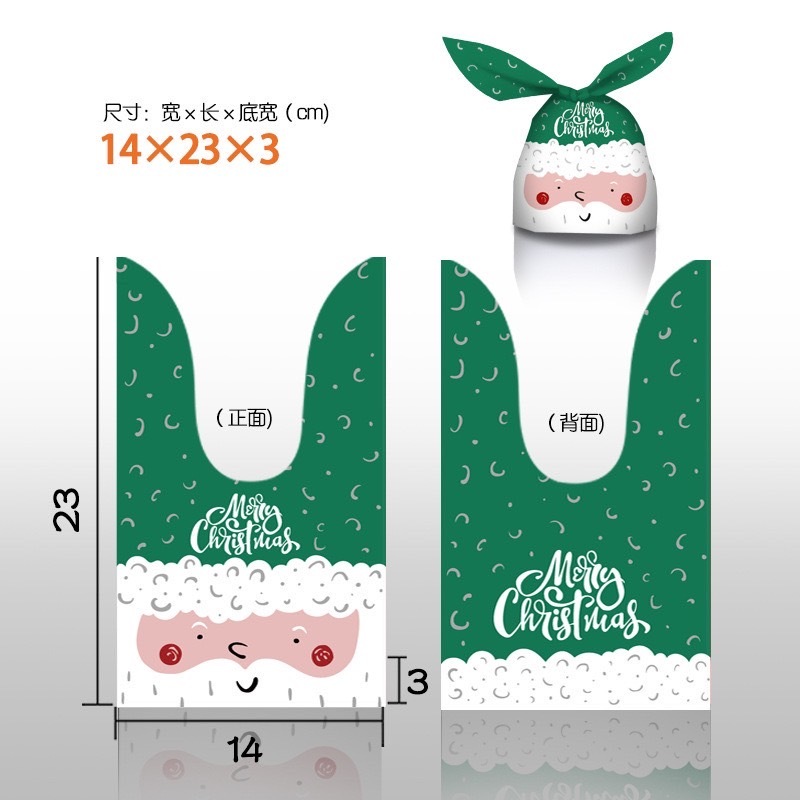 ถุงผูกหูกระต่ายใส่ขนมลายน่ารัก แพ็คประมาณ 5 ใบ ใบมีลายคริสมาสต์นะคะ