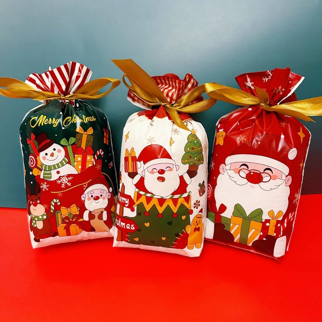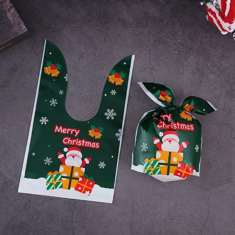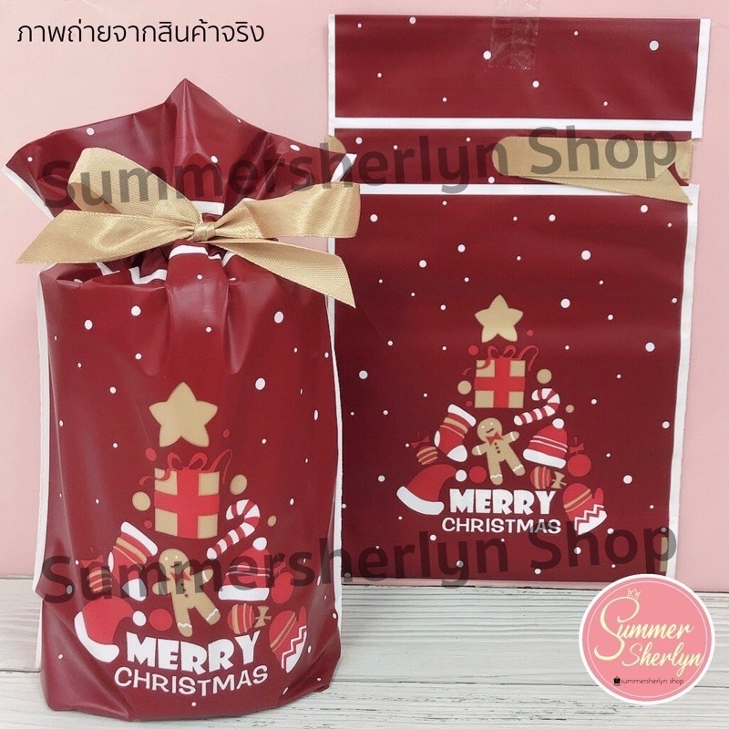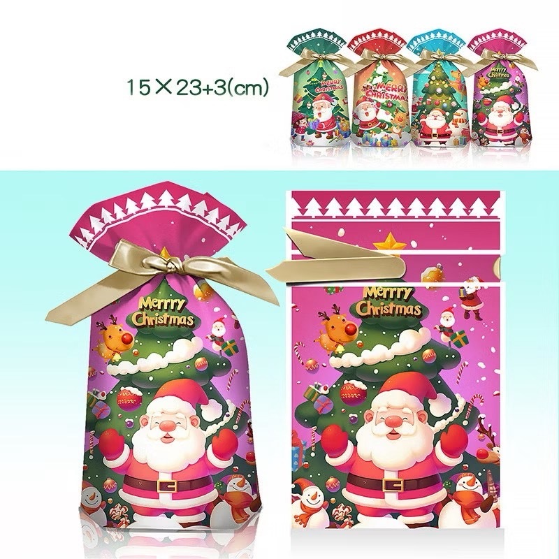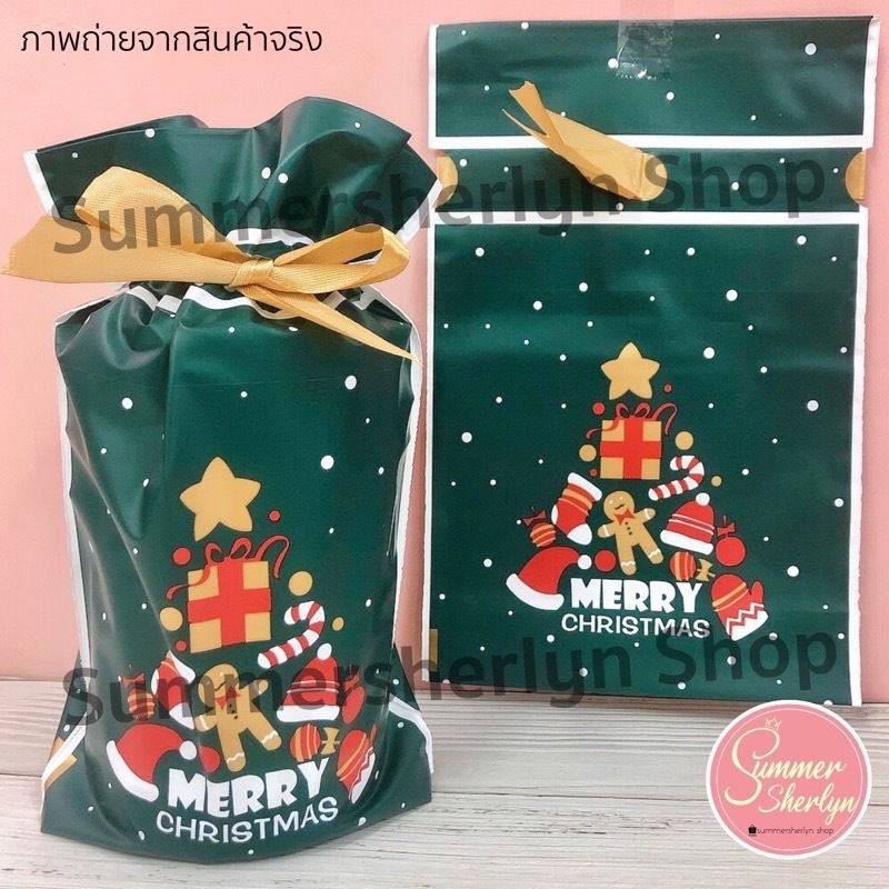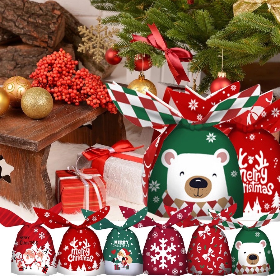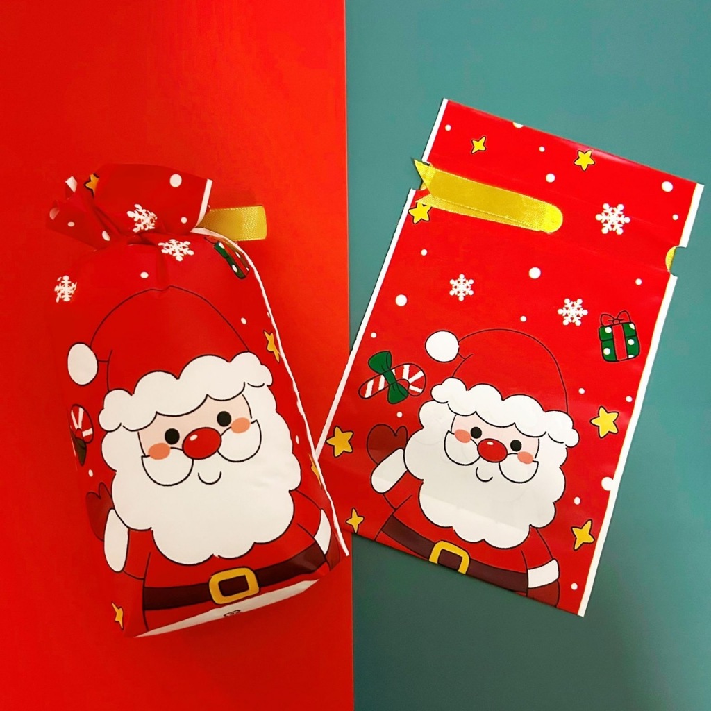 ถุงผูกหูกระต่ายใส่ขนมลายน่ารัก แพ็คประมาณ 5 ใบ ใบมีลายคริสมาสต์นะคะ