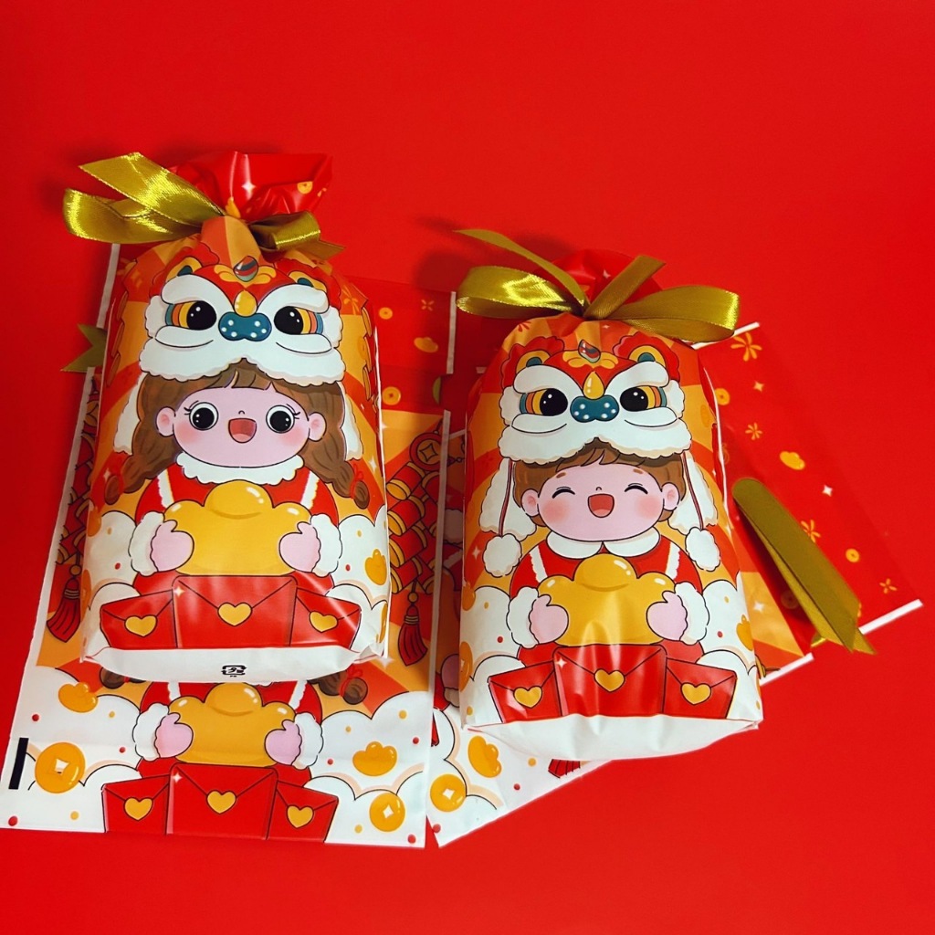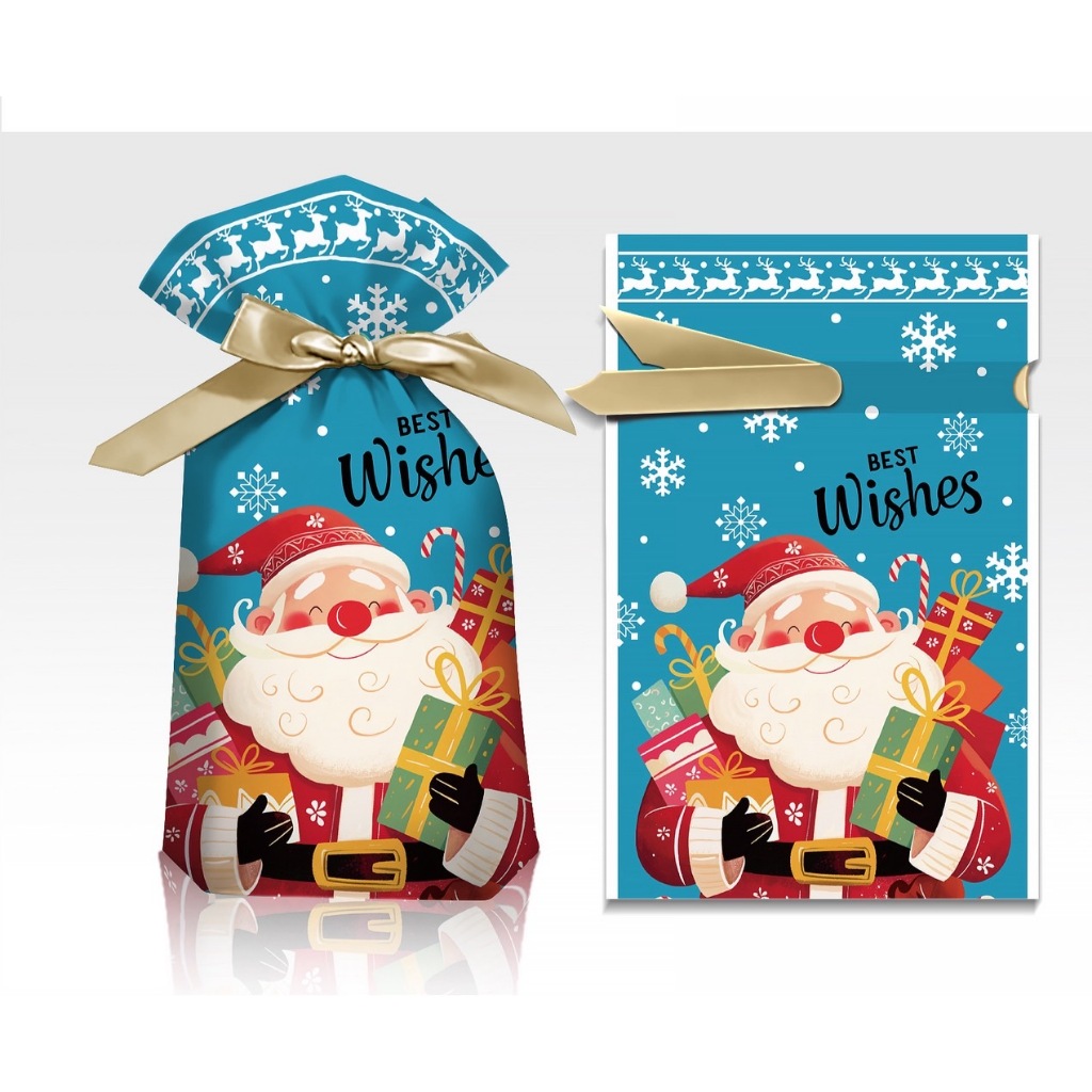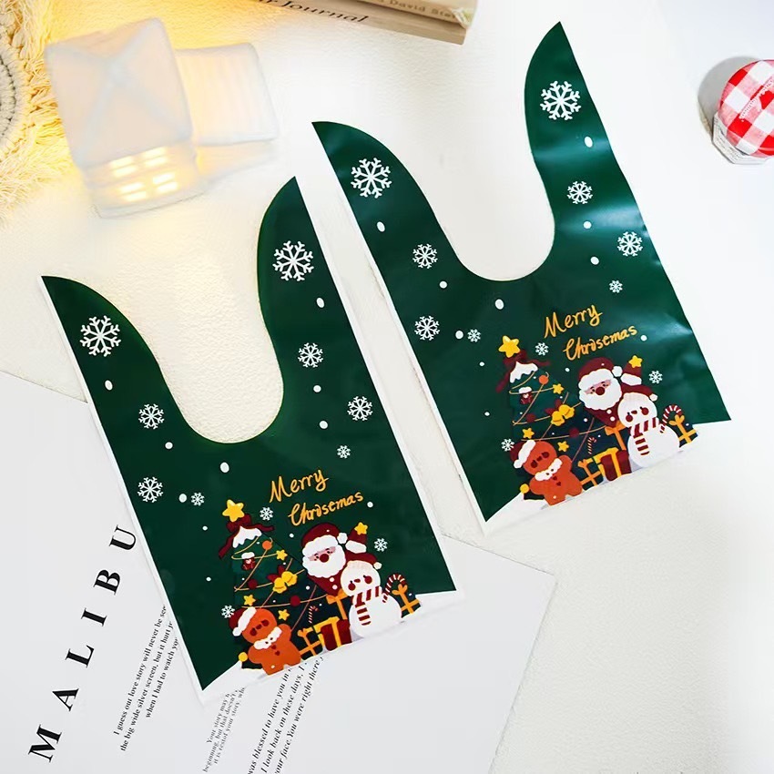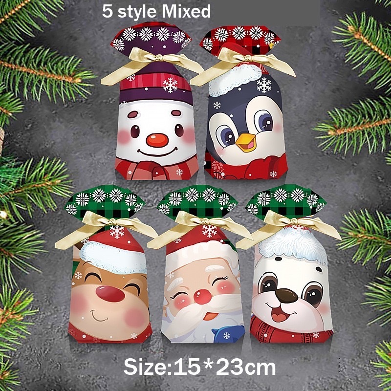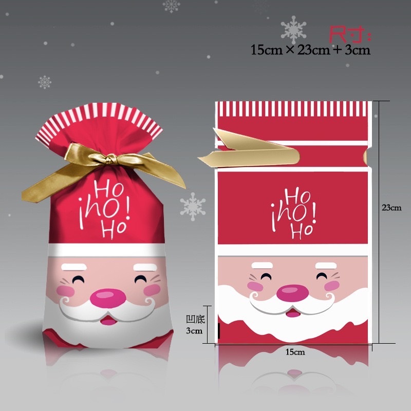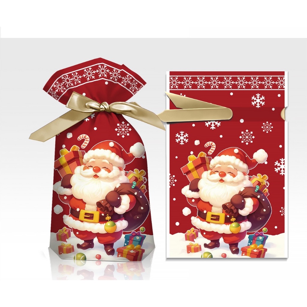 ถุงผูกหูกระต่ายใส่ขนมลายน่ารัก แพ็คประมาณ 5 ใบ ใบมีลายคริสมาสต์นะคะ