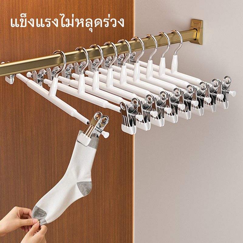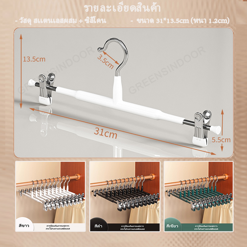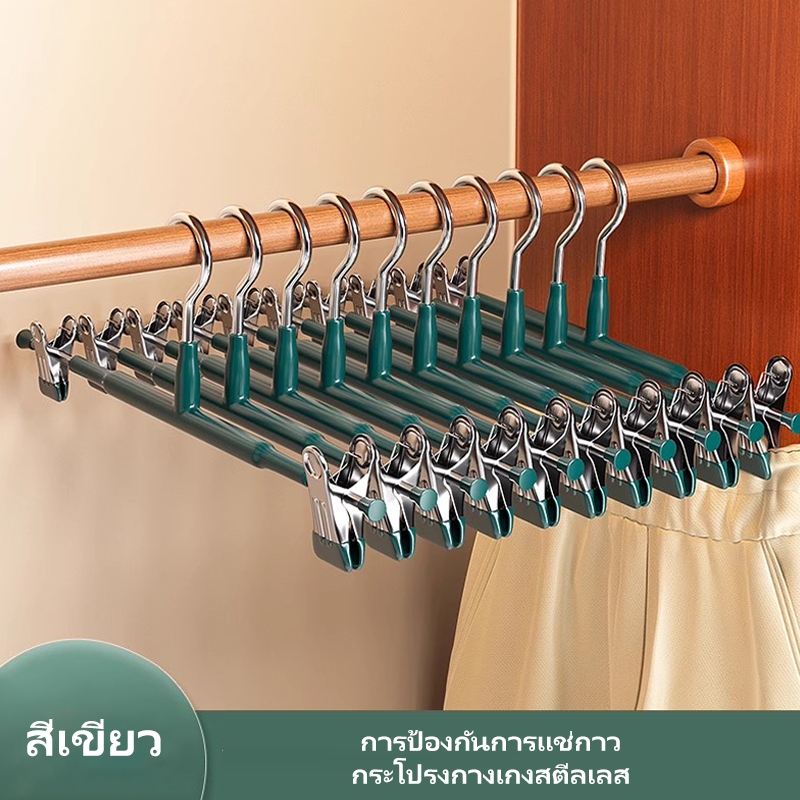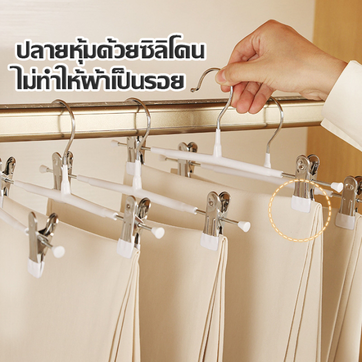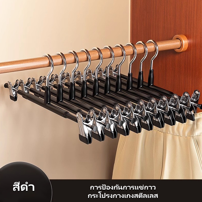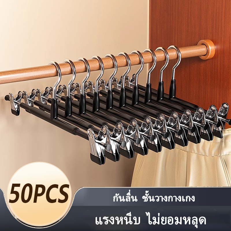 [สเเตนเลสหนา]50Pcs ไม้หนีบกางเกง ไม้แขวนเสื้อ สเเตนเลสเคลือบ ซิลิโคนป้องกันสนิม หนีบกางเกงกระโปรง