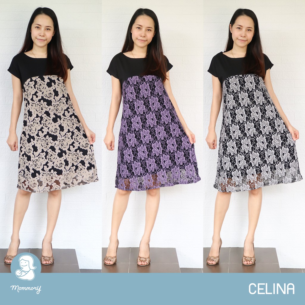 เดรสให้นมบุตร Mommory รุ่น Celina ให้นมแบบซิปซ่อน ผ้าลูกไม้