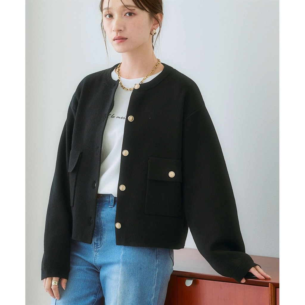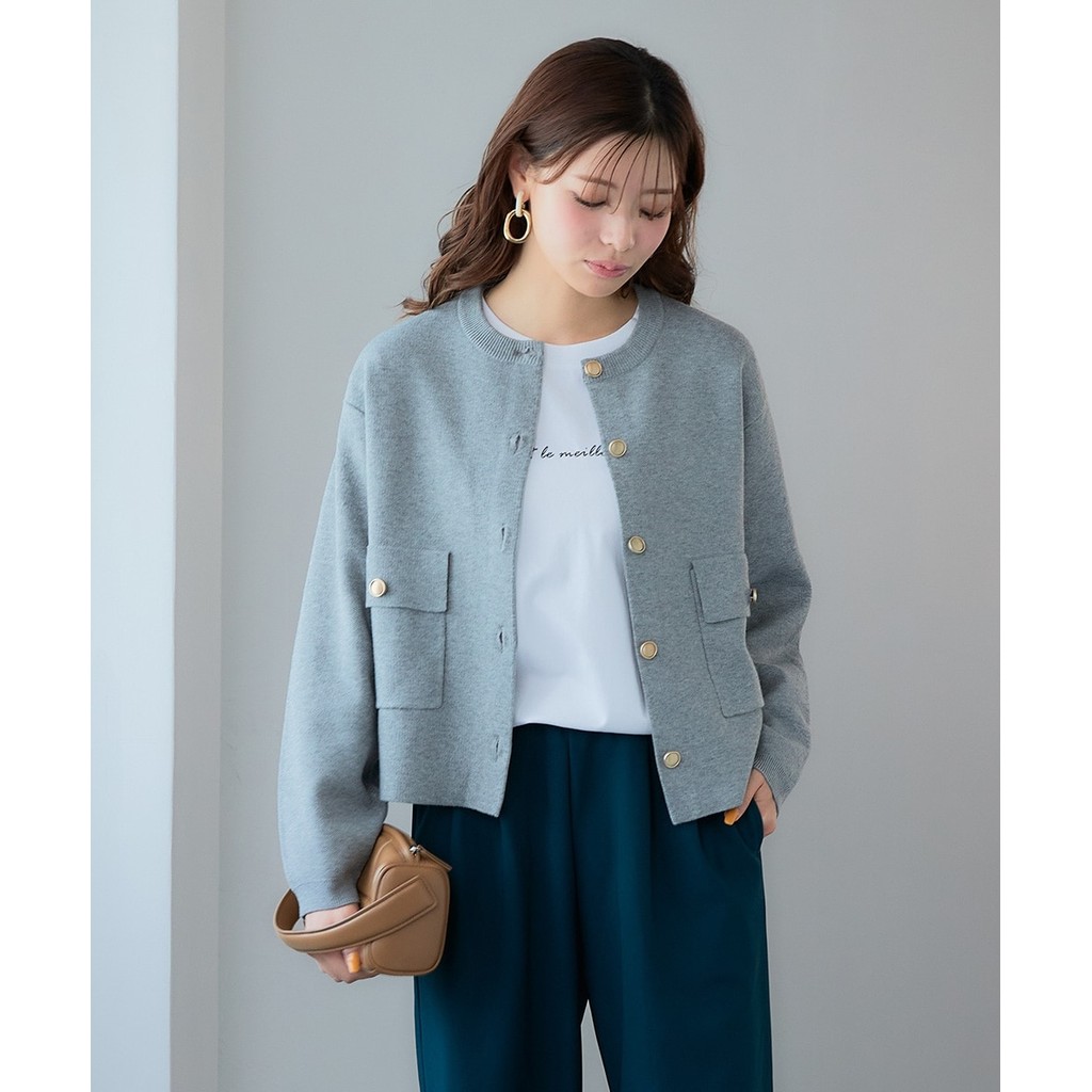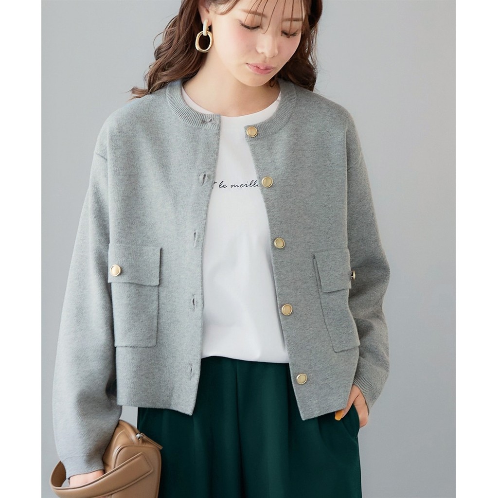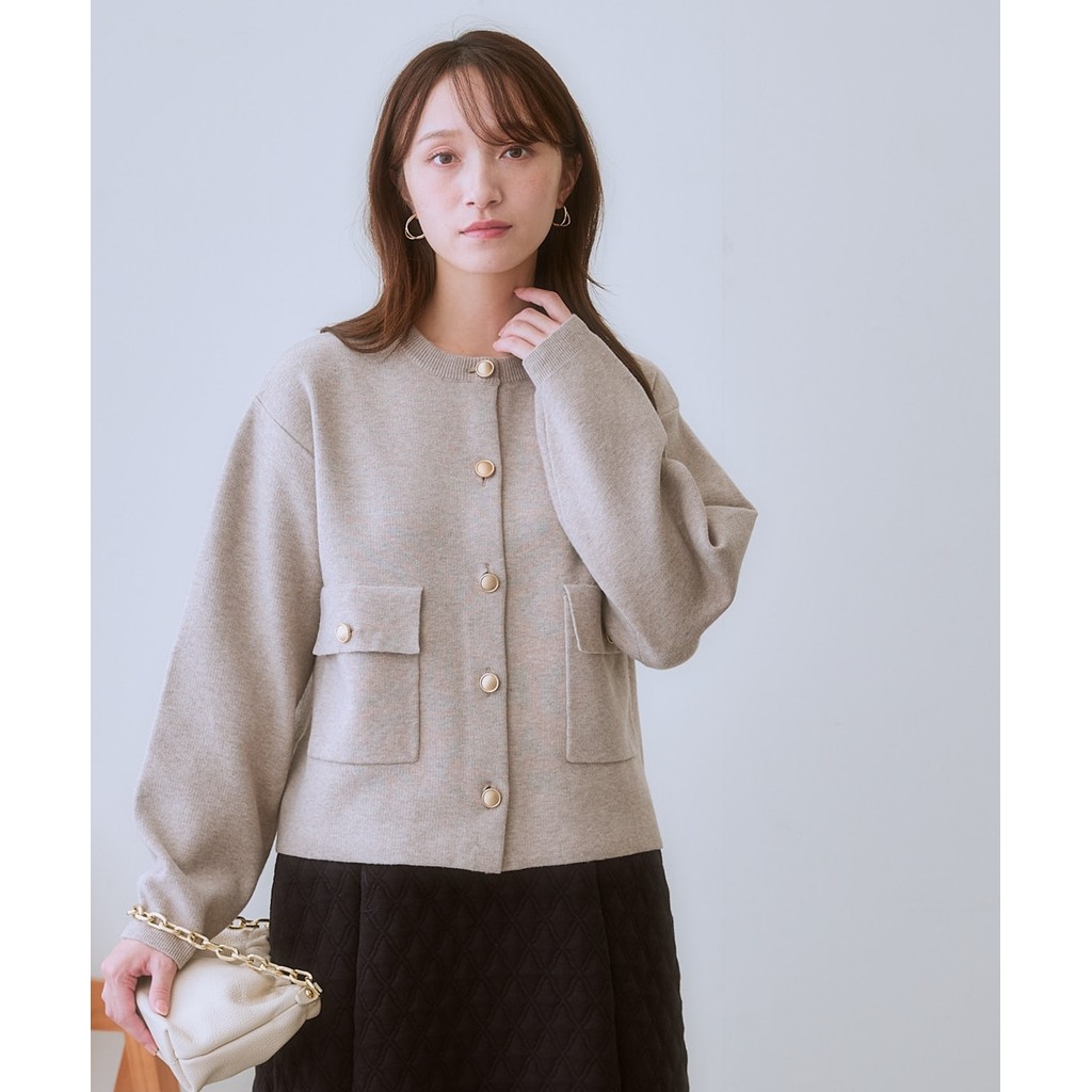 Direct from Japan Nissen_เสื้อแจ็คเก็ตไหมพรมหญิง กระดุมทองหรูหรา คาร์ดิแกนแขนยาวเรียบหรู ใส่ทำงาน ออฟฟิศ แฟชั่นสปริงซัมเมอร์