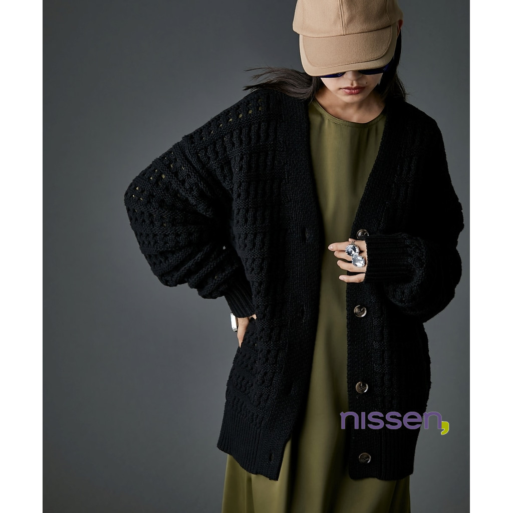 Direct from Japan Nissen_ เสื้อคาร์ดิแกนไหมพรมถักนูนคอวี GEVS. ทรงหลวม สวมสบาย สไตล์มินิมอล แฟชั่นผู้หญิงไซส์ใหญ่ เสื้อคลุมกันหนาวฤดูใบไม้ร่วง