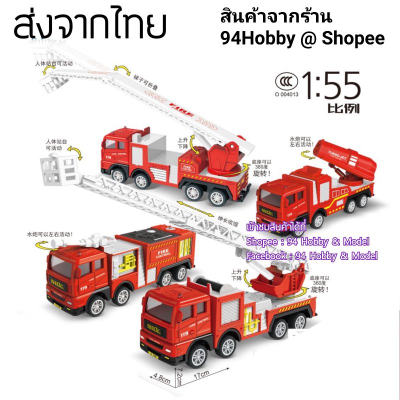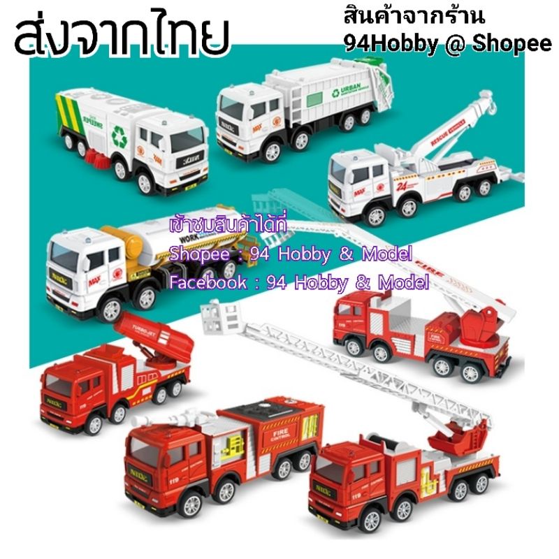 🇹🇭 [17cm] รถดับเพลิง รถกู้ภัย รถเทศบาล รถขนส่ง รถน้ำ สเกล 1:55 ของเล่น