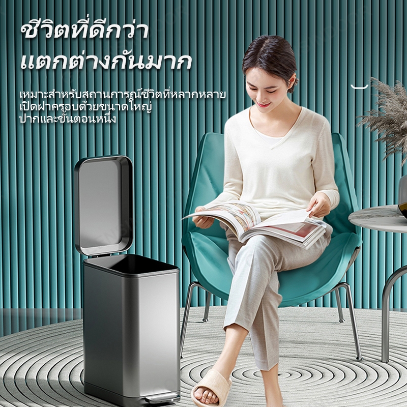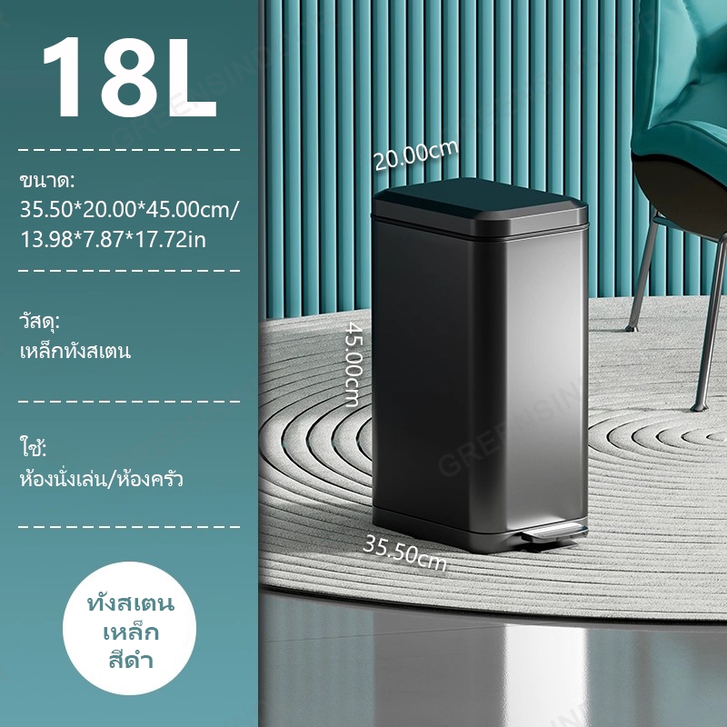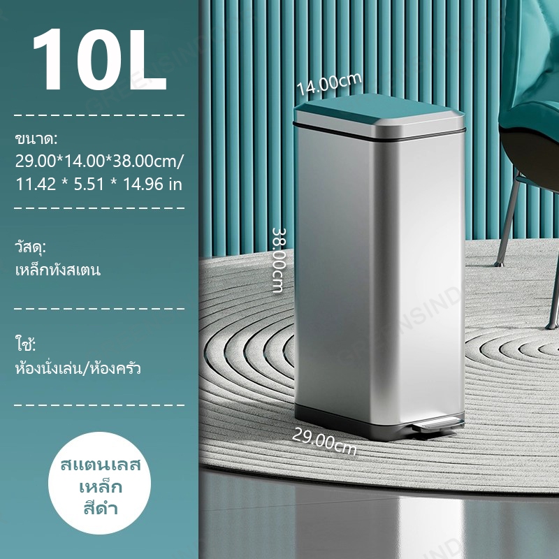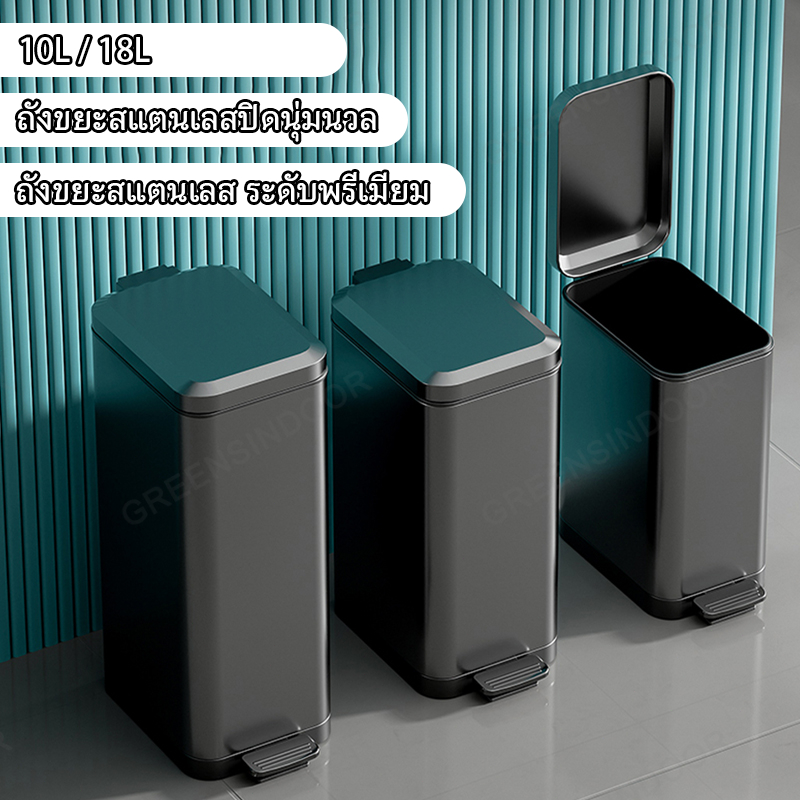 10ลิตร/18 ลิตร ถังขยะสแตนเลสสตีลแบบเหยียบ รัวเรือน ครัว ห้องนั่งเล่น ห้องน้ํา ถังขยะ มีสินค้าในสต็อก