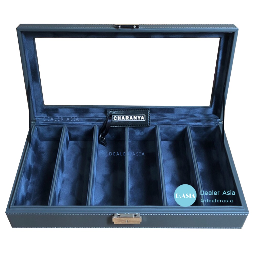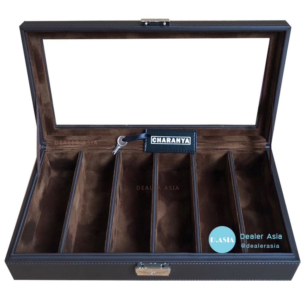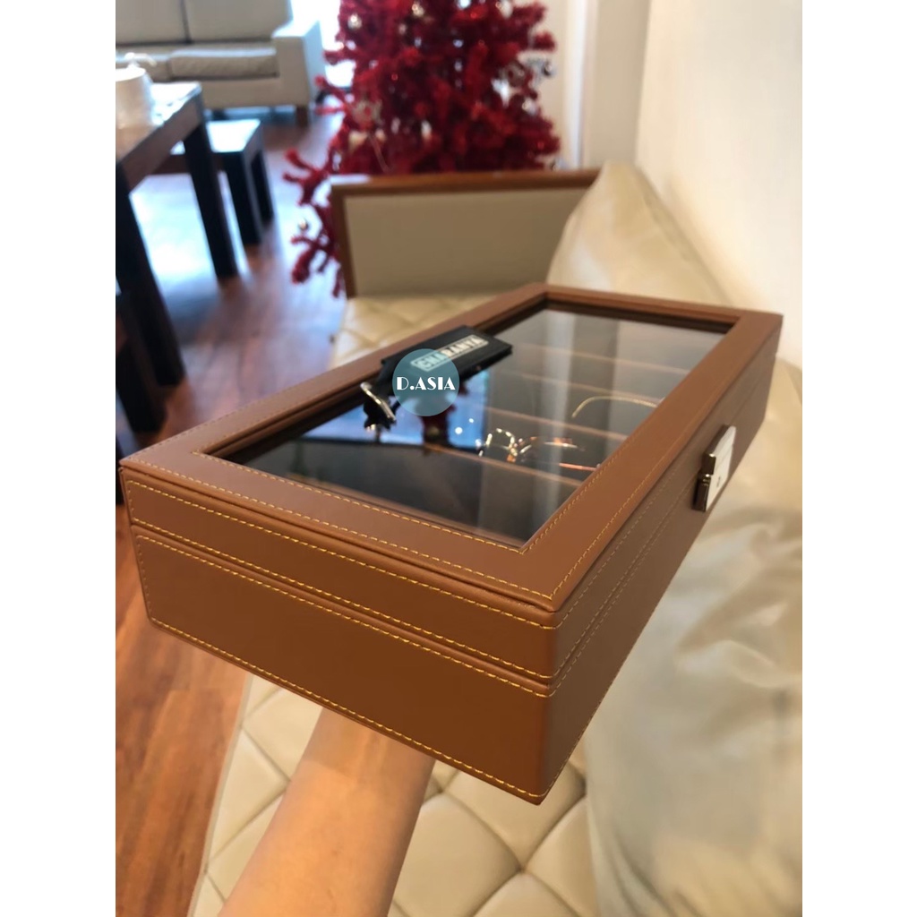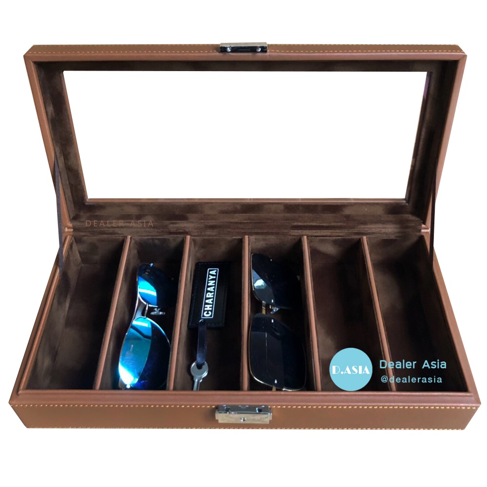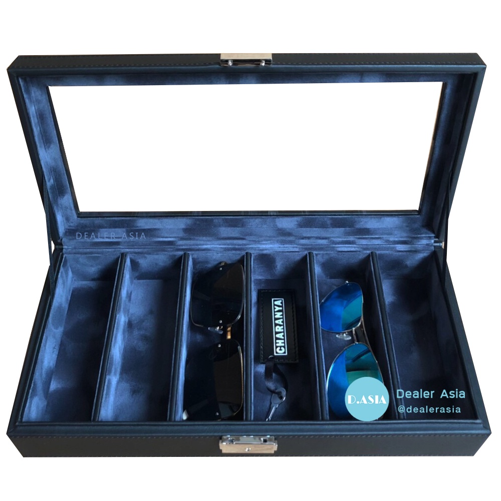 กล่องแว่นตา 6 ช่อง สวยหรู พรีเมี่ยม วัสดุดี กล่องหนัง กำมะหยี่ Sunglasses Storage box CHRV6_L_K