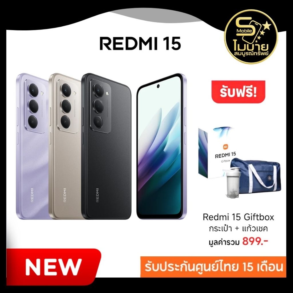 [New]Redmi 15 | Redmi 15 5G (8+256) หน้าจอ6.9นิ้ว 144Hz แบตเตอรี่่ 7,000 mAh ประกันศูนย์ 15เดือน
