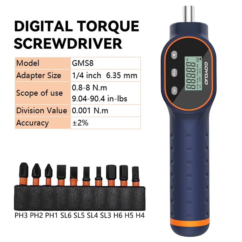 ชุดไขควงแรงบิดดิจิตอล 7.08-70.8 in-lb, 1/4 ความแม่นยําสูงปรับแรงบิดไม่ลื่นจับสว่านแม่เหล็ก