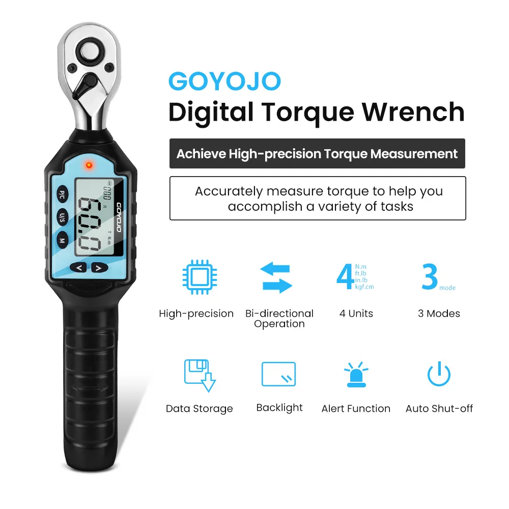 โกโยโจ 2024 ใหม่ล่าสุด 3/8" ประแจแรงบิดดิจิตอลความแม่นยําสูงหลายเครื่องใช้-เหมาะสําหรับยานยนต์รถจักรยานยนต์จักรยาน ทําเอง &ซ่อมบ้ าน-ทนทานแม่นยําเป็นมิตรกับผู้ใ