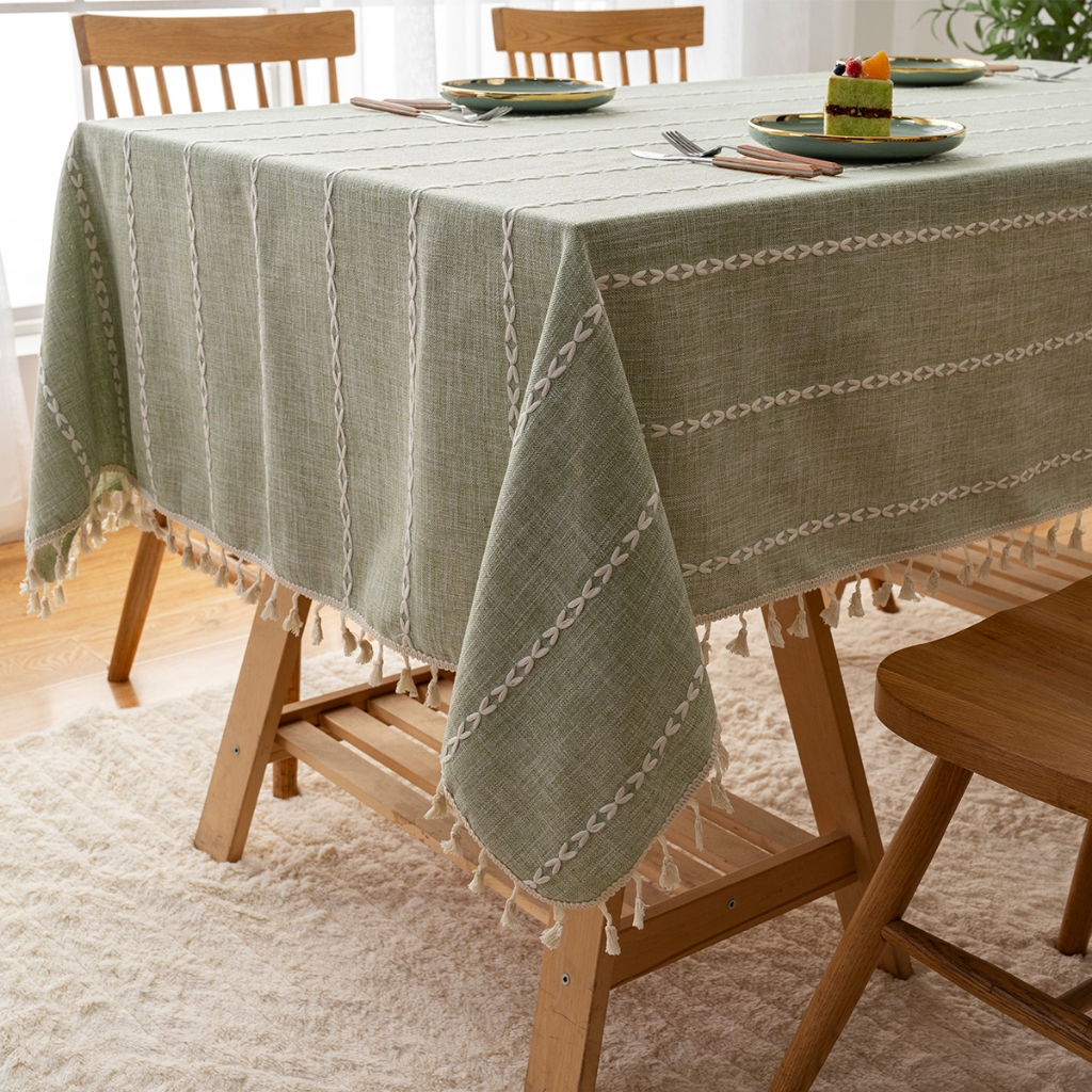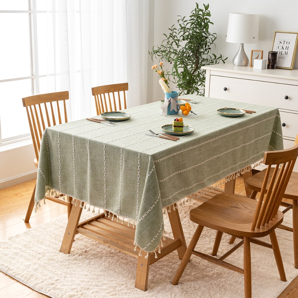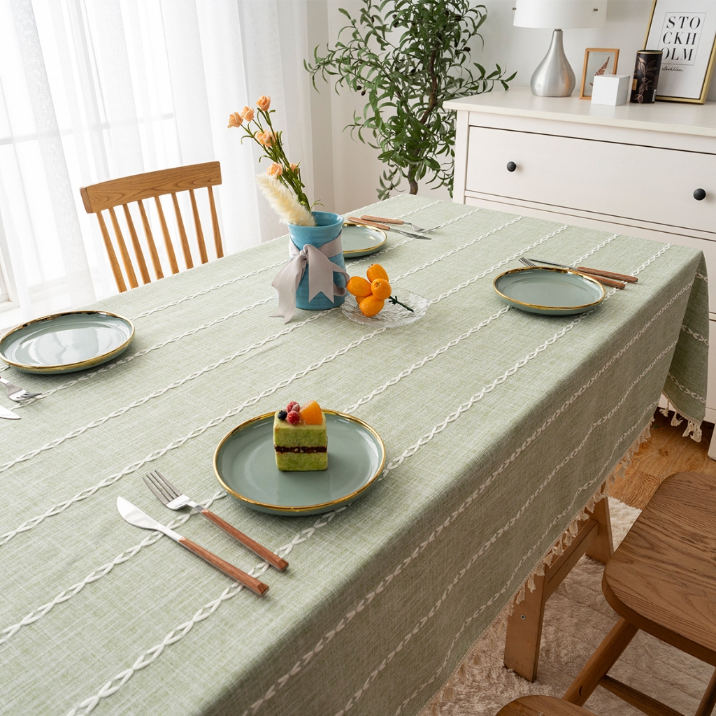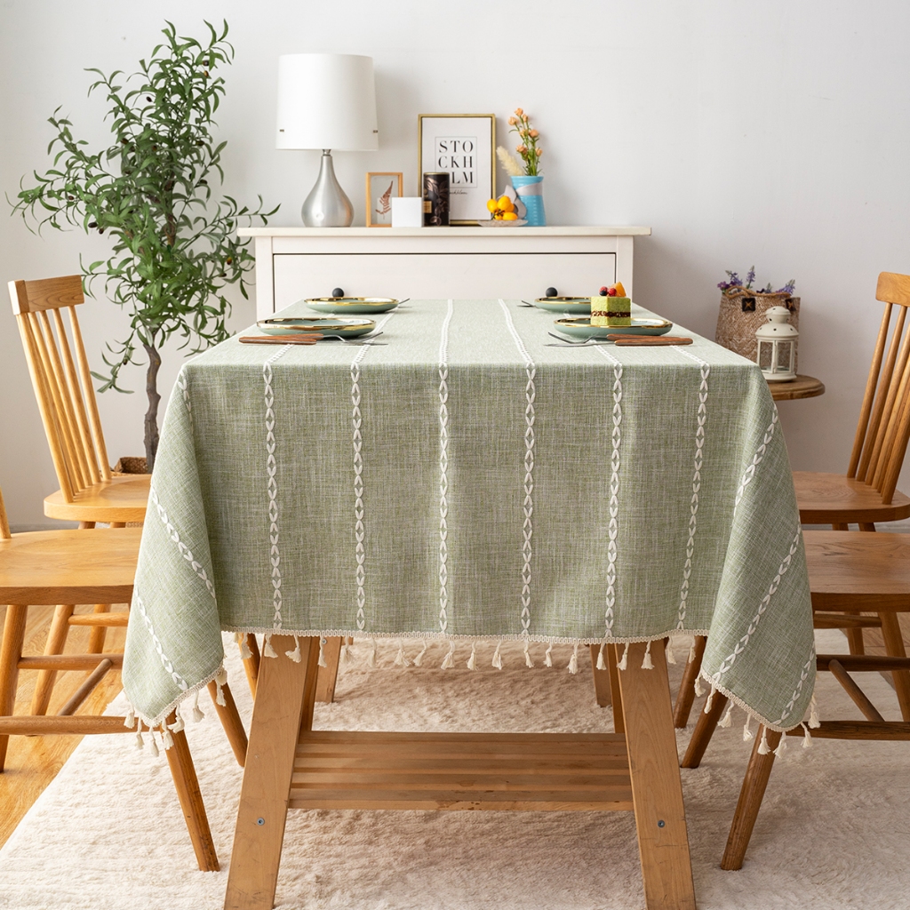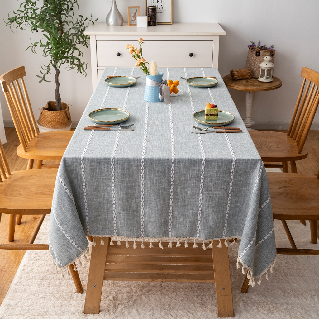 ผ้าลินินผ้าปูโต๊ะผ้าฝ้ายผ้าปูโต๊ะสี่เหลี่ยมลายเย็บปักถักร้อยตารางปกหนักล้างทําความสะอาดบ้านไร่นุ่ม โบโฮ ผ้าปูโต๊ะสําหรับห้องครัวและตารางผ้าปู