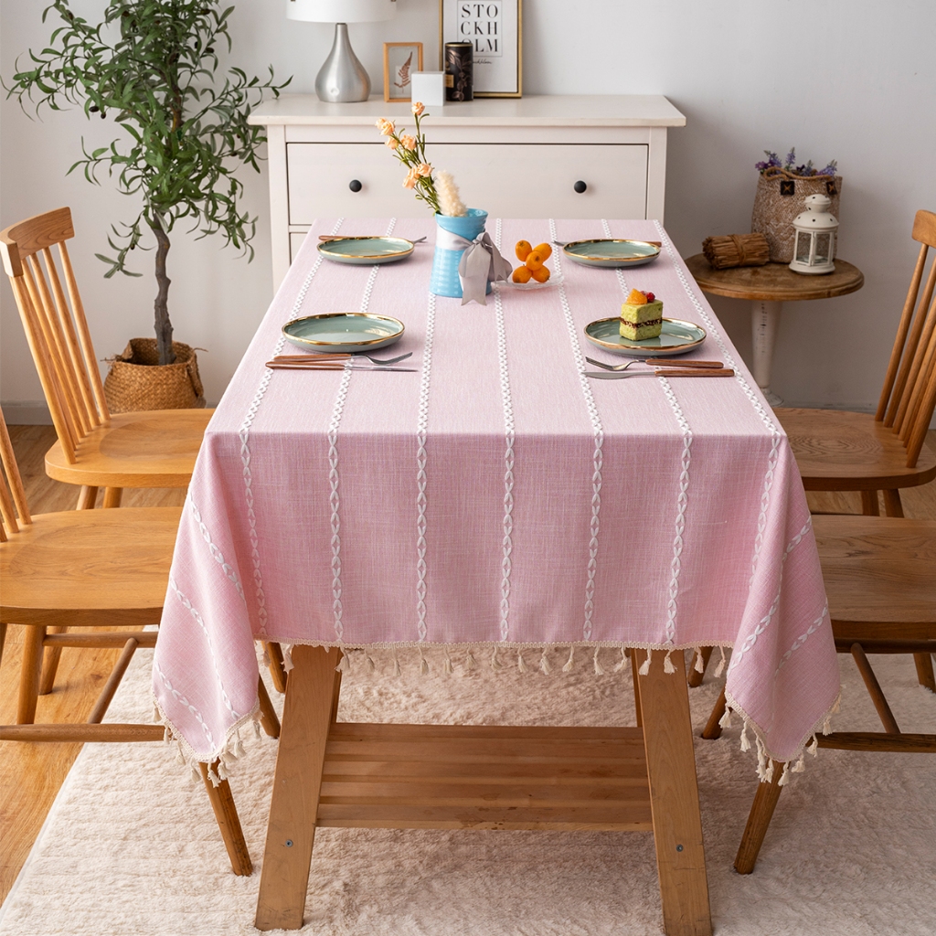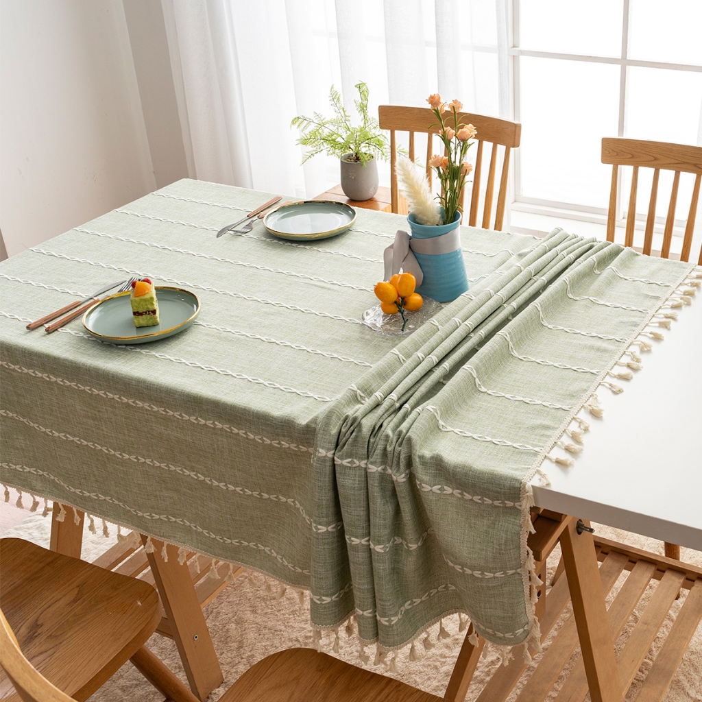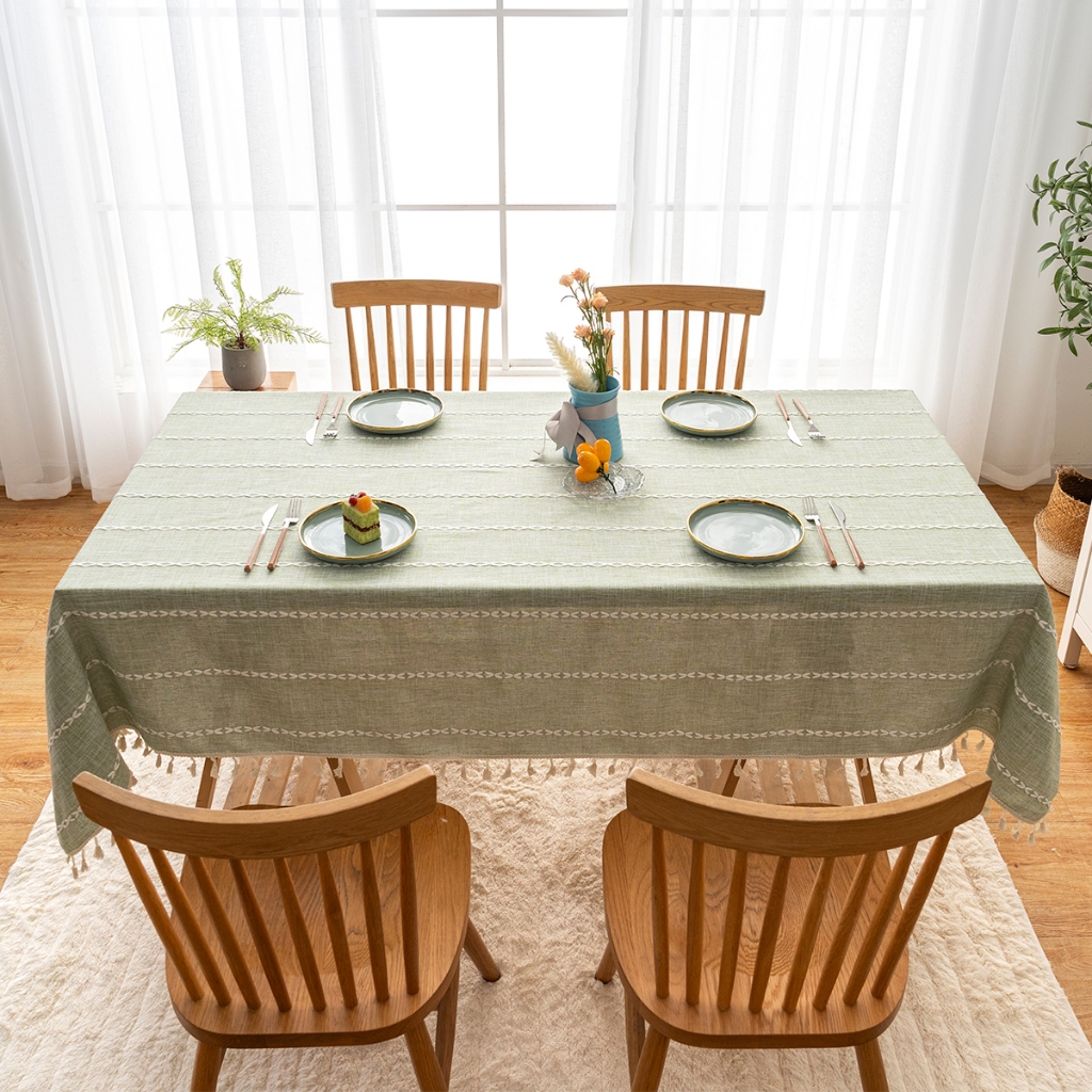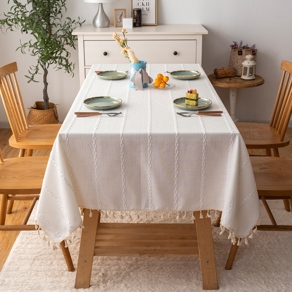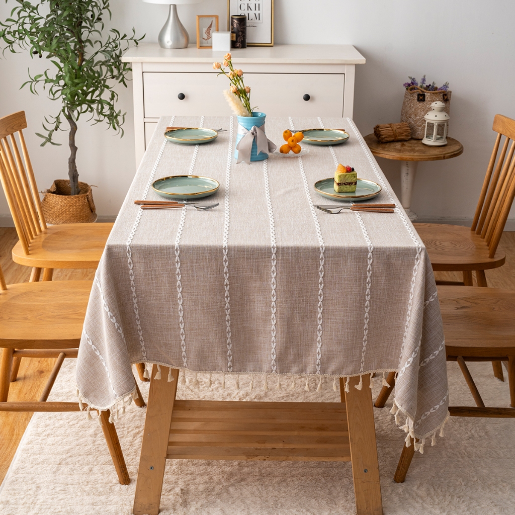 ผ้าลินินผ้าปูโต๊ะผ้าฝ้ายผ้าปูโต๊ะสี่เหลี่ยมลายเย็บปักถักร้อยตารางปกหนักล้างทําความสะอาดบ้านไร่นุ่ม โบโฮ ผ้าปูโต๊ะสําหรับห้องครัวและตารางผ้าปู
