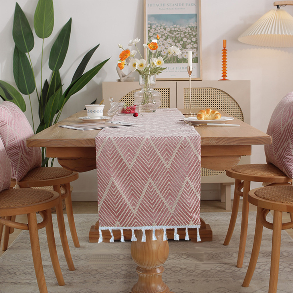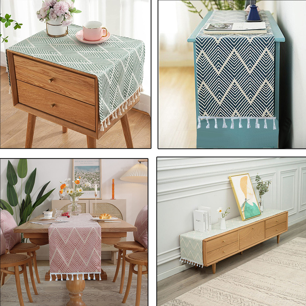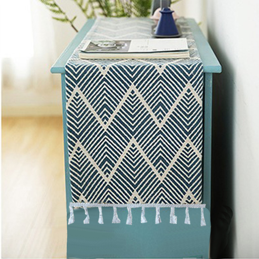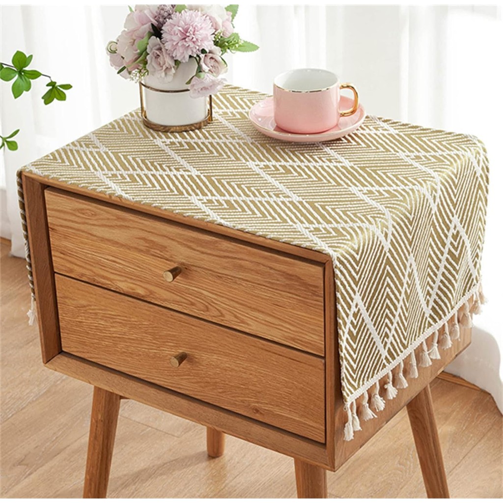 โต๊ะ โบโฮ นักวิ่ง ตารางผ้าโต๊ะข้างเตียงที่เรียบง่ายพู่ปกผ้าผ้าปูโต๊ะปกผ้าขนหนูผ้าลินินกว้าง โต๊ะเครื่องแป้ง นักวิ่ง ผ้าพันคอสําหรับนอนปลายข้างเต