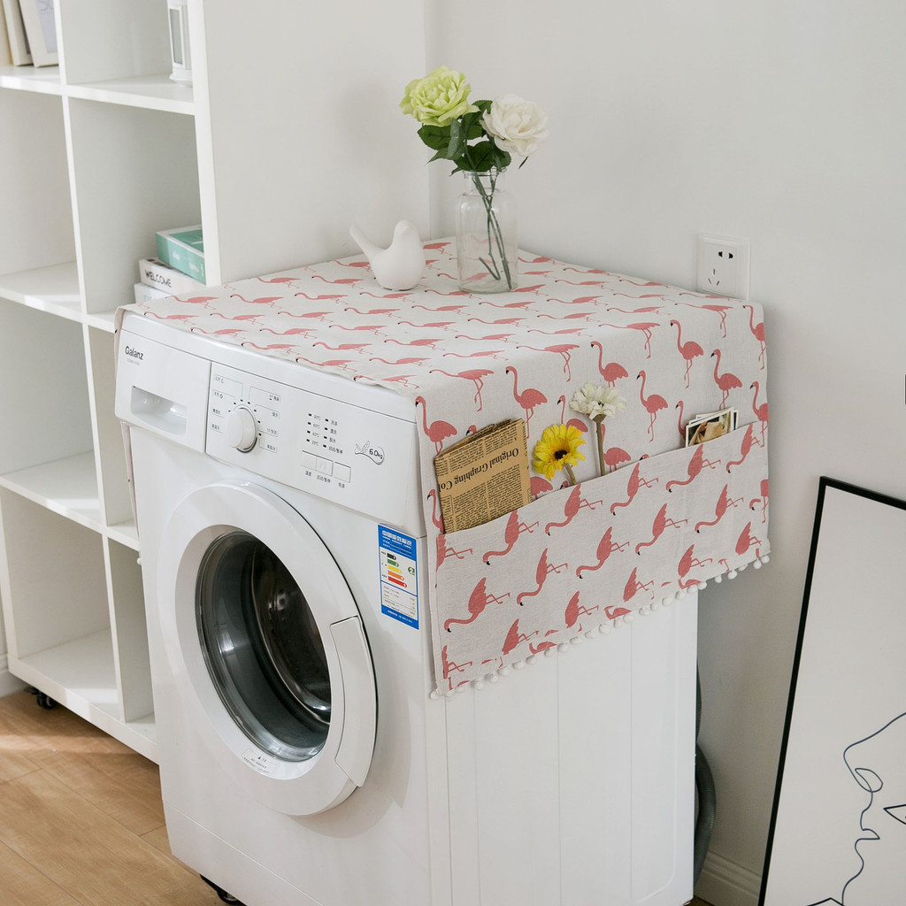 ฝาครอบกันฝุ่นตู้เย็นเครื่องซักผ้าปกผ้าไมโครเวฟฝุ่นปกผ้าตู้เย็นฝุ่นเครื่องซักผ้าอเนกประสงค์ผ้าฝ้ายผ้าลินินด้านบนปกกับถุงเก็บด้าน