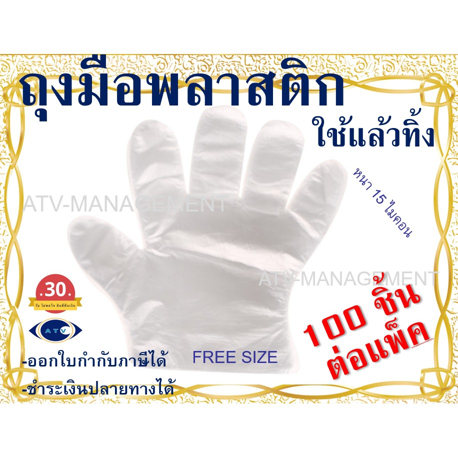 ถุงมือพลาสติก แบบใช้แล้วทิ้ง แพ็ค 100 ชิ้น หนา 15 ไมคอน ถุงมือพลาสติกสำหรับอาหาร