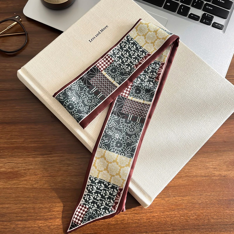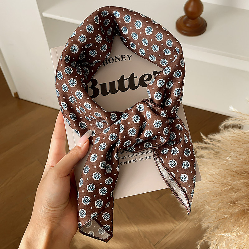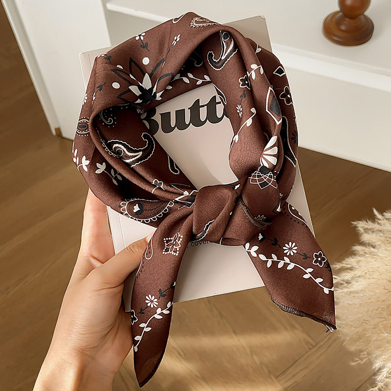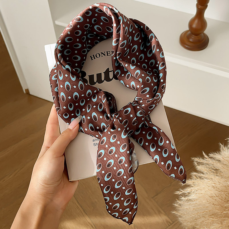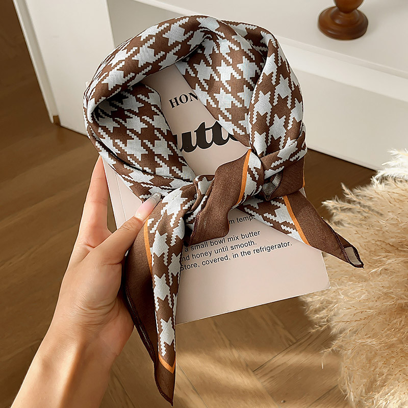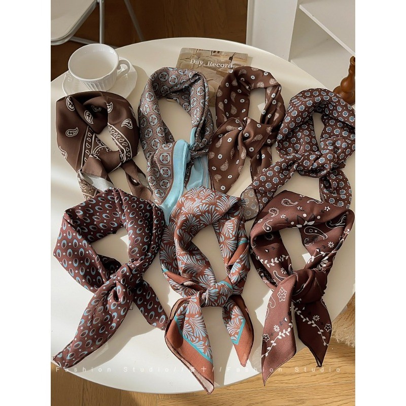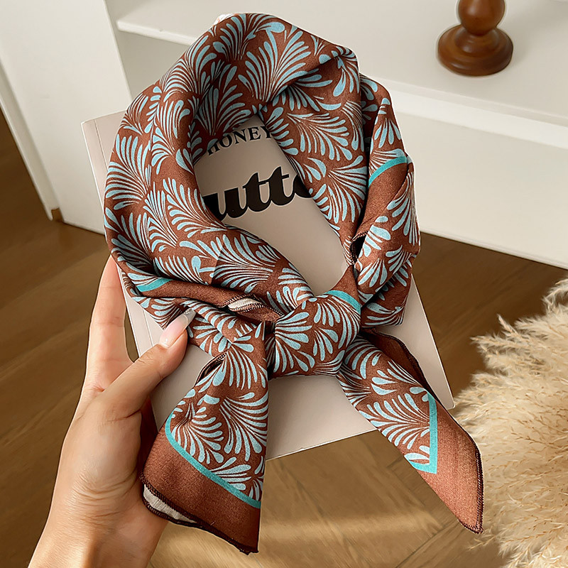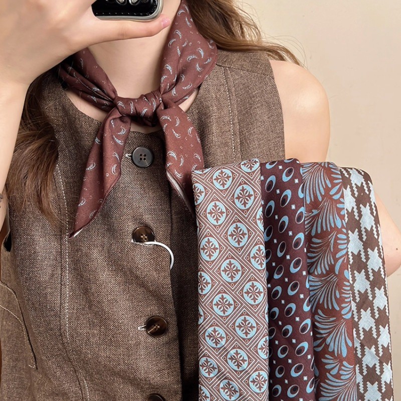 ผ้าพันคอลายไหมสีน้ำตาลสำหรับฤดูหนาว ดีไซน์ย้อนยุค พร้อมเป็นอุปกรณ์แต่งผม