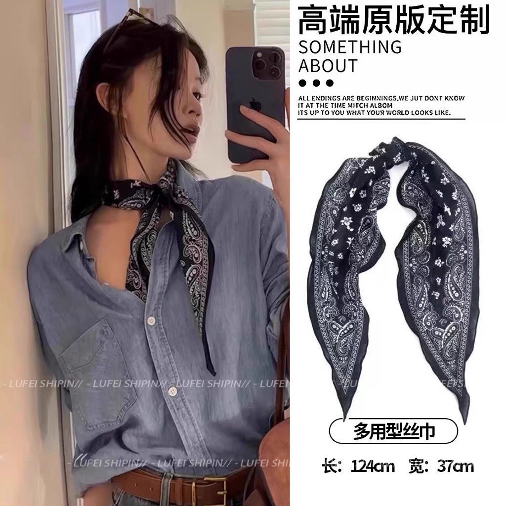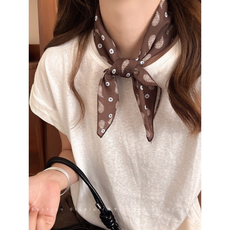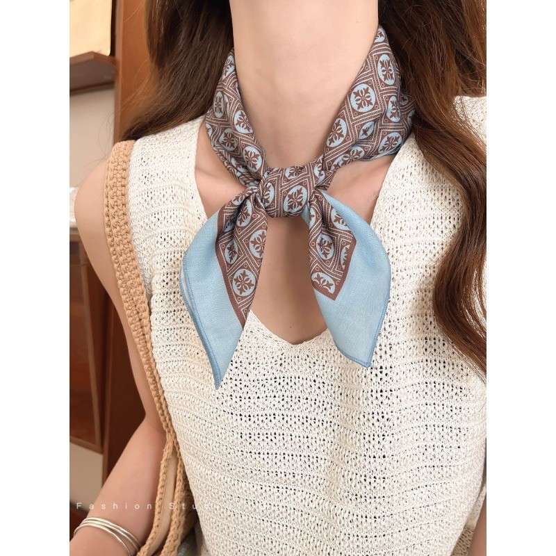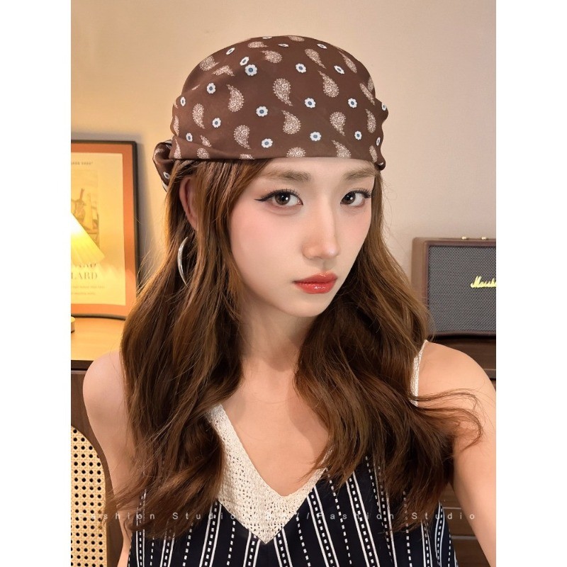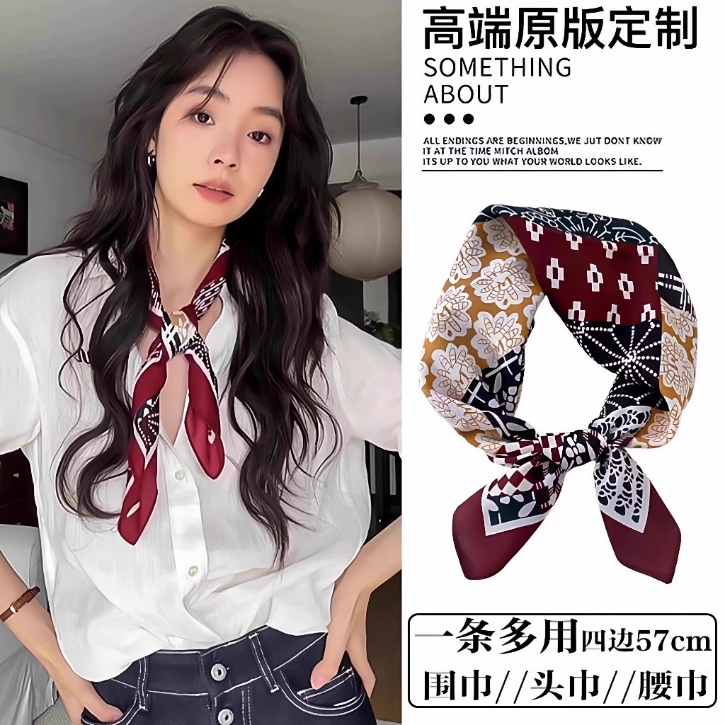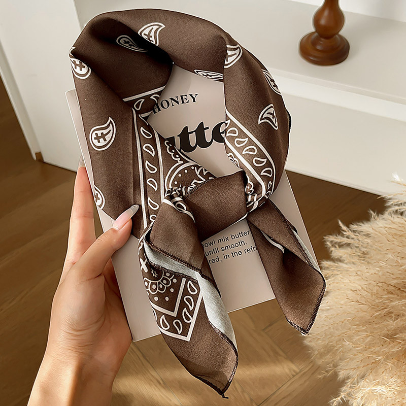 ผ้าพันคอลายไหมสีน้ำตาลสำหรับฤดูหนาว ดีไซน์ย้อนยุค พร้อมเป็นอุปกรณ์แต่งผม