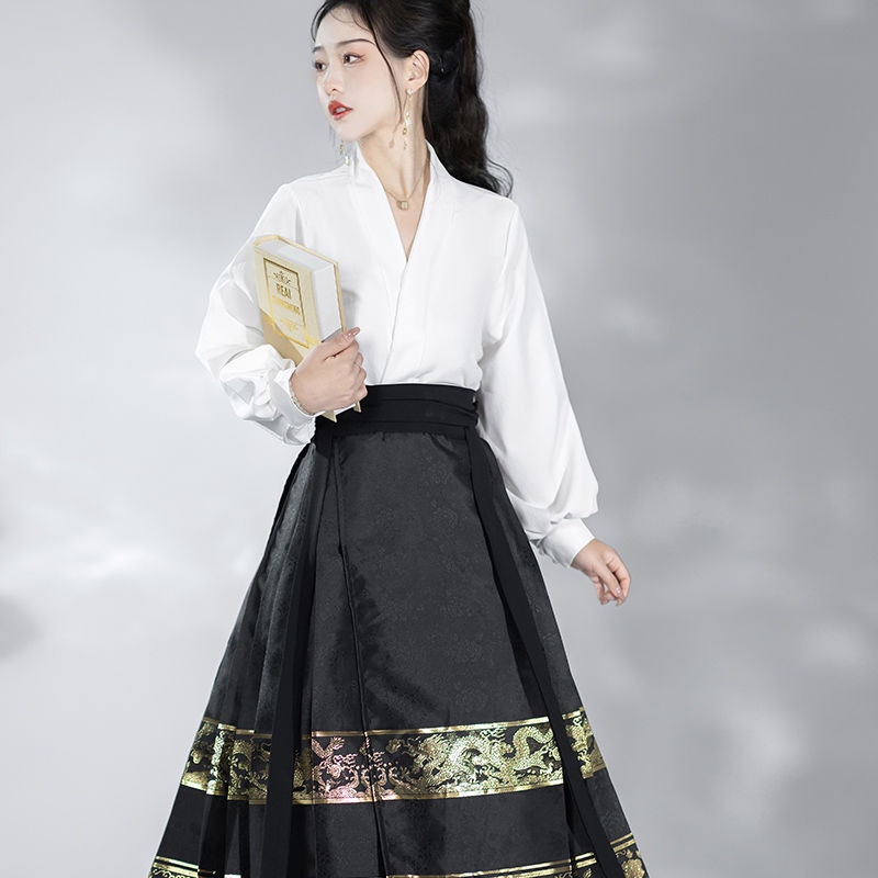 Luo Zhiyu Ming Made Hanfu Yulong Seal ปรับปรุงเครื่องบินแขนใหม่สไตล์จีนกระโปรงม้าหญิงฤดูใบไม้ผลิฤดูร้อนทุกวัน