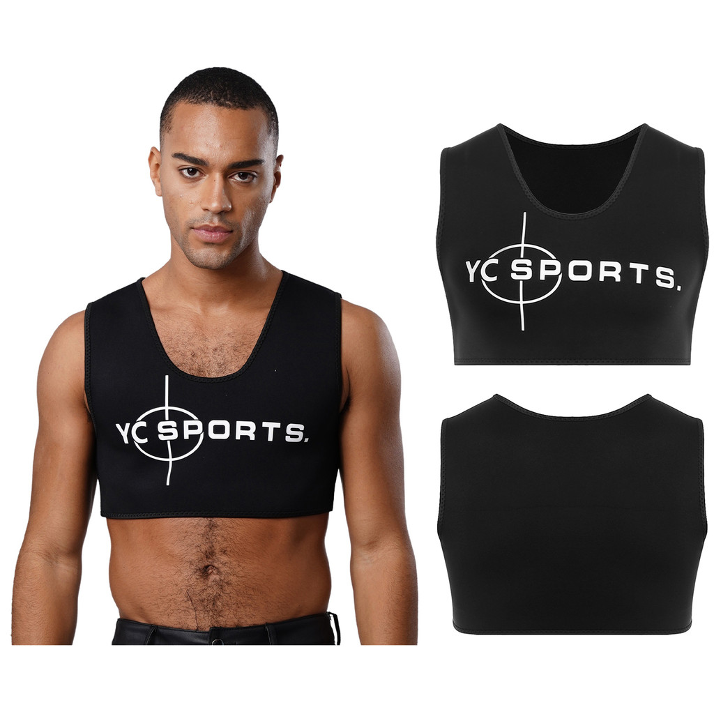 Jhaoyu Mens Brace Vest Chest Support Sport Vest Crew Neck Sleeve Compression Crop Tank Tops for Basketball Football Dumbbell Gym