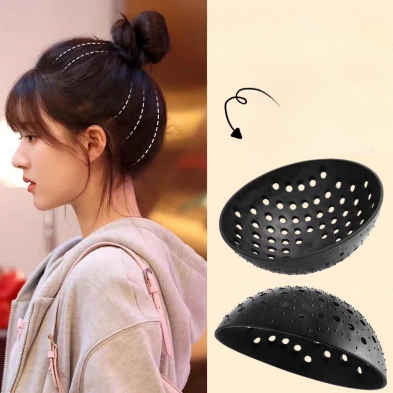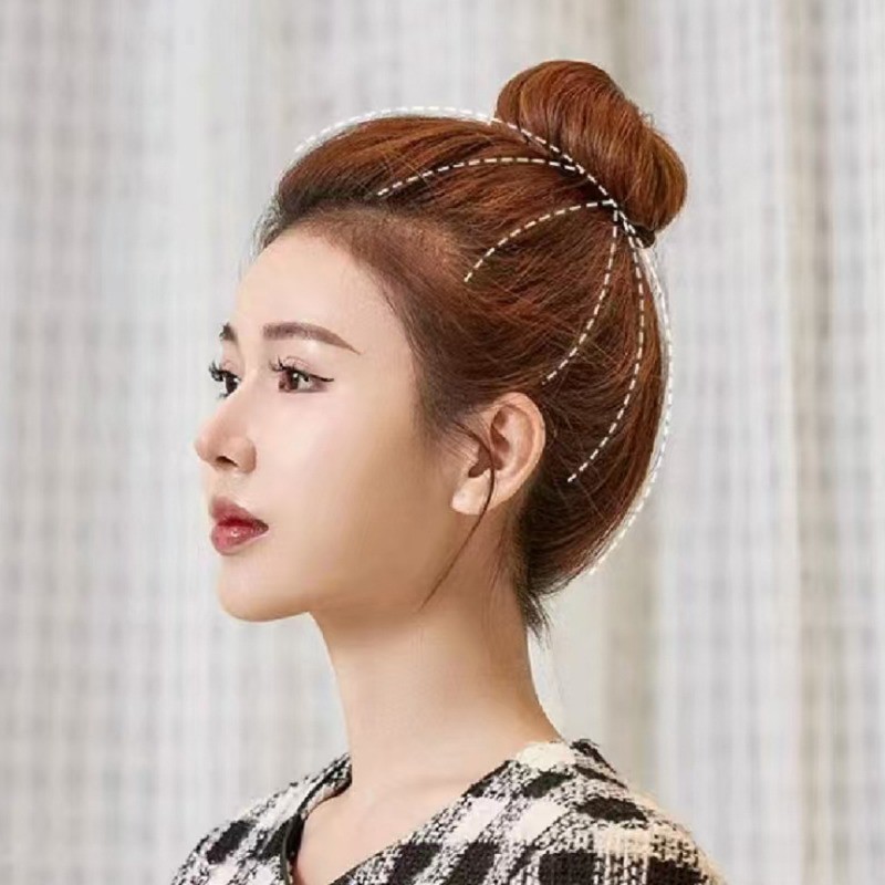 (เรือจากประเทศไทย) ซิลิโคนที่มองไม่เห็น Pomelo Skin Round Bun Pad High Skull Top Ponytail Accessories