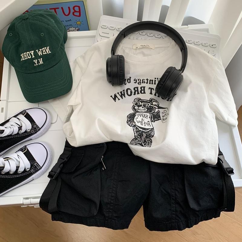 เด็กชายกางเกงทำงานแบบบางสำหรับฤดูร้อนกางเกงห้าส่วนลำลองสไตล์เกาหลีสุดหล่อสำหรับเด็กกางเกงขาสั้นทรงหลวมสำหรับเด็กกลางและเล็ก