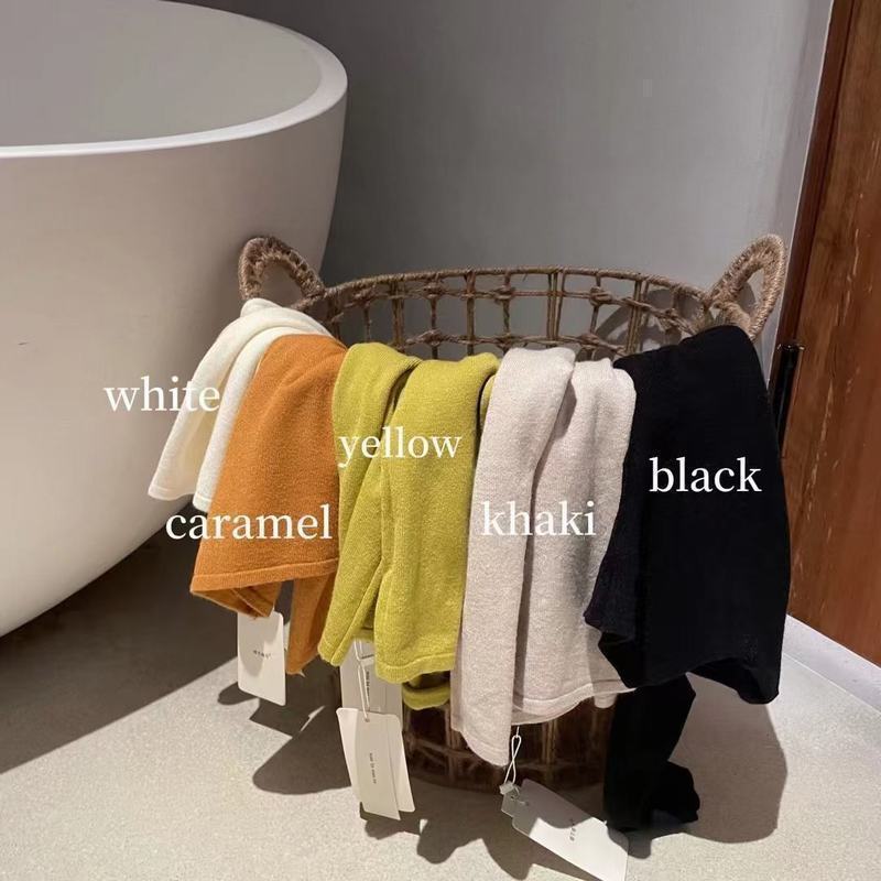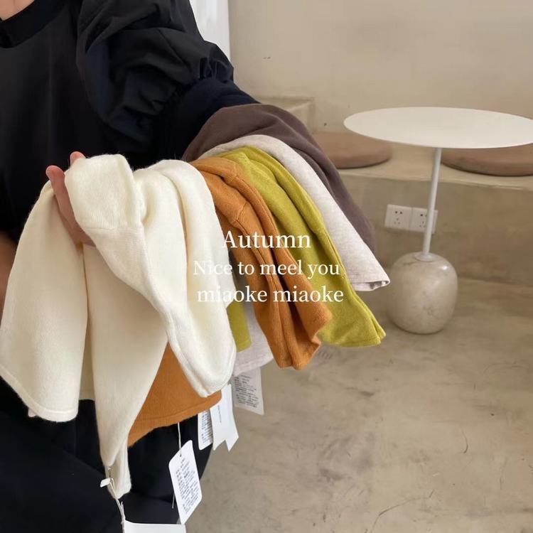 เสื้อถักเนื้อนุ่มสำหรับฤดูใบไม้ร่วงและหนาว สไตล์ยุโรป กระโปรงลายเรียบร้อยสีเข้ม