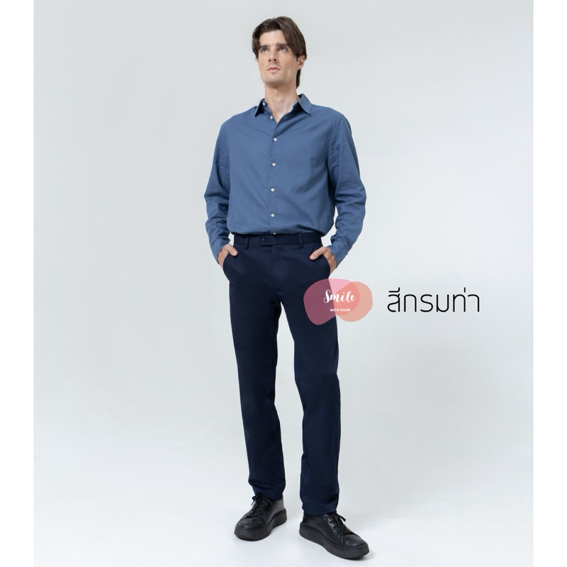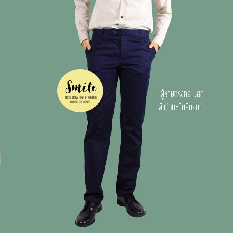 SMILE กางเกงสแลคชายขายาว ทรงกระบอก ผ้ากำมะดิน สีกรมท่า