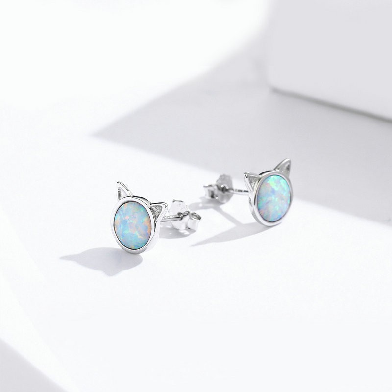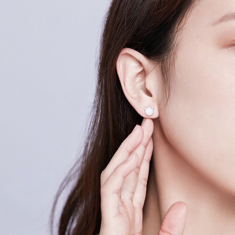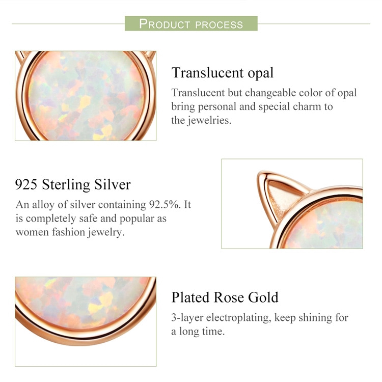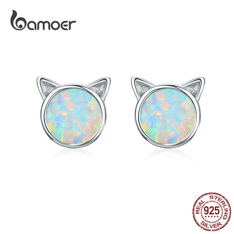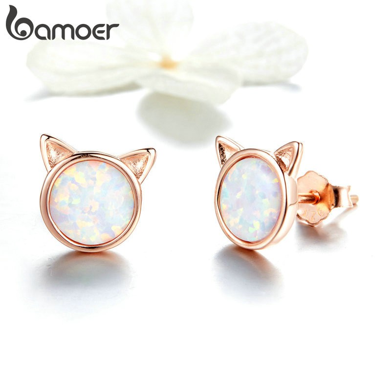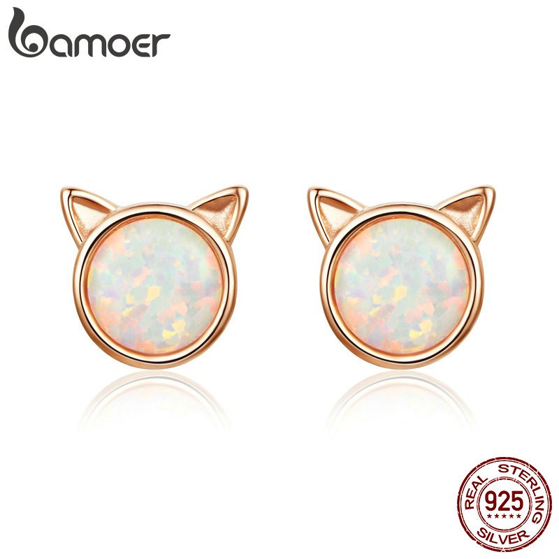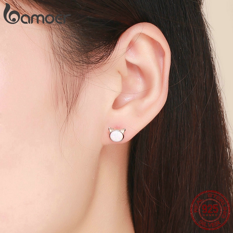 Bamoer ต่างหูแพลตตินัม รูปแมวน่ารัก สีโรสโกลด์ S925