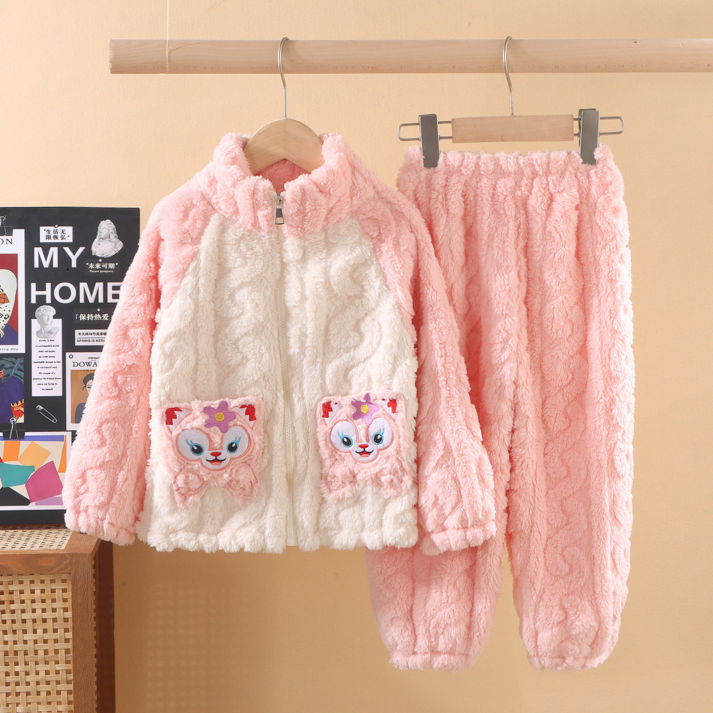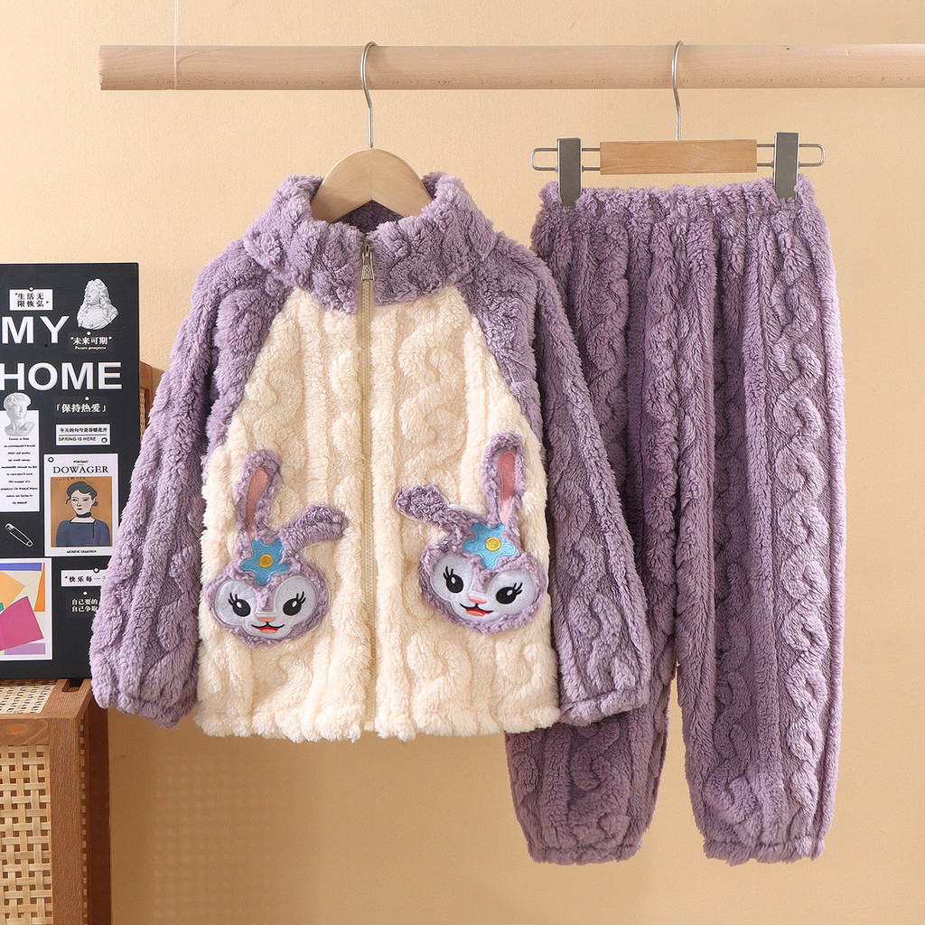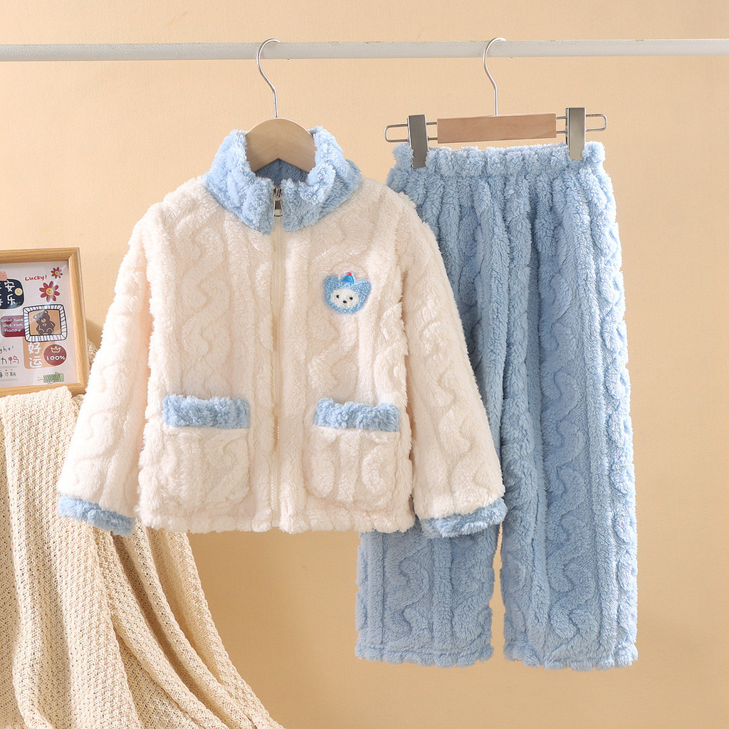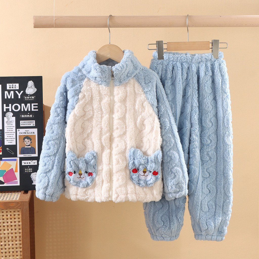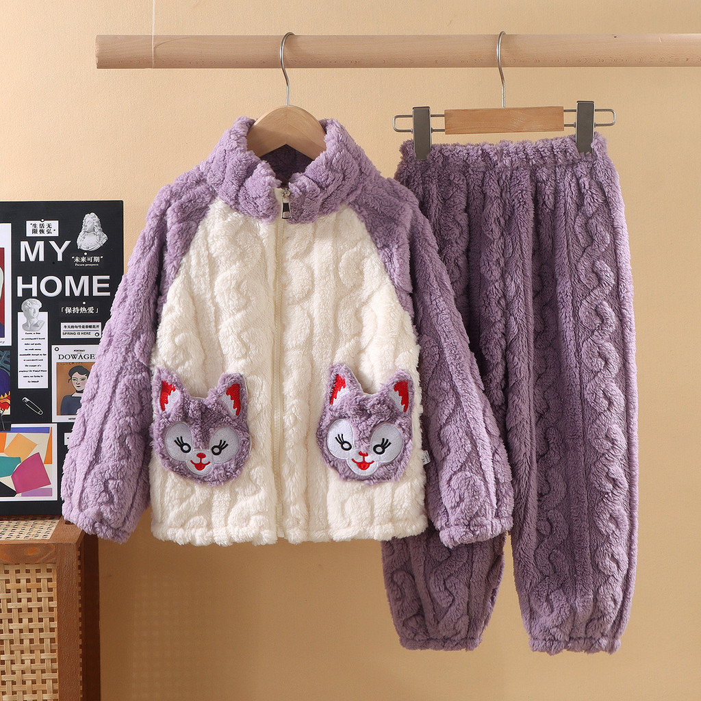 ชุดนอนสไตล์ใหม่สำหรับเด็ก หนาพิเศษพร้อมขนแกะปะการัง เหมาะสำหรับฤดูหนาว ไซส์กลางถึงใหญ่สำหรับทั้งผู้ชายและผู้หญิง