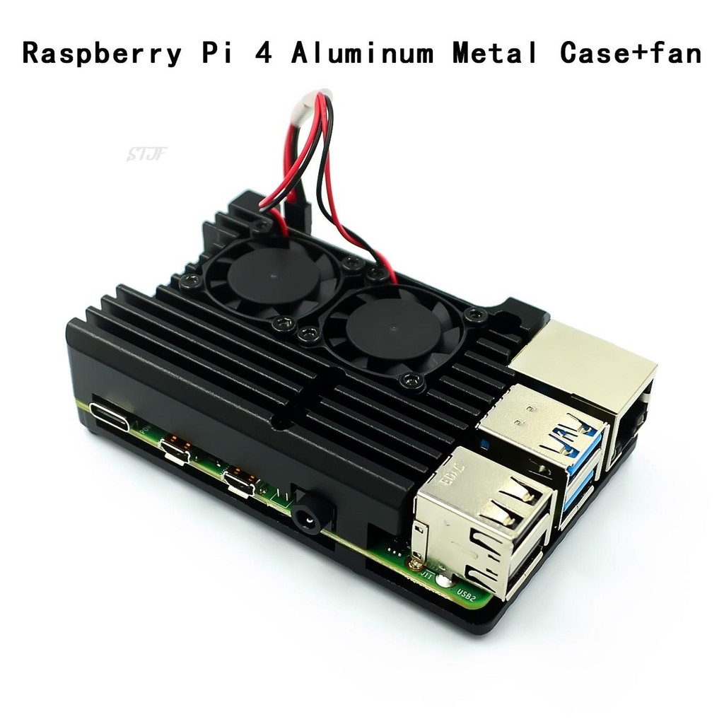 Raspberry Pi 4/3 เคสอลูมิเนียมพร้อมพัดลมระบายความร้อนคู่เปลือกโลหะกล่องสีดําสําหรับ RPI Raspberry Pi 4B/3B/3B +