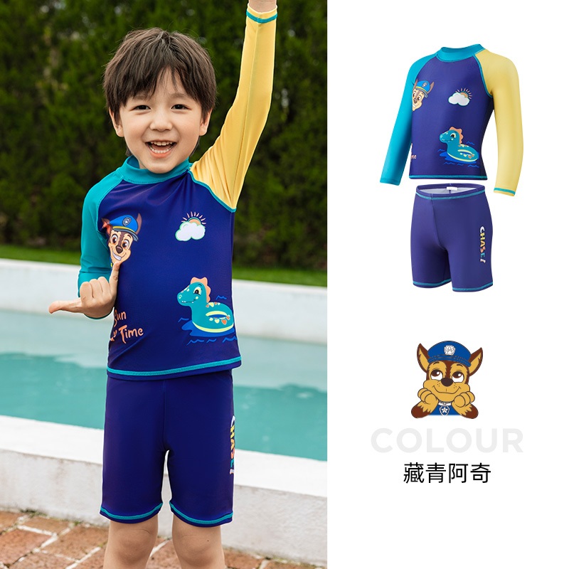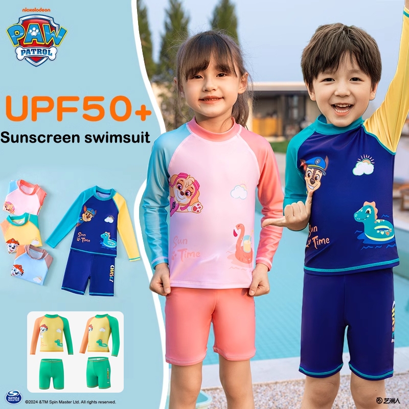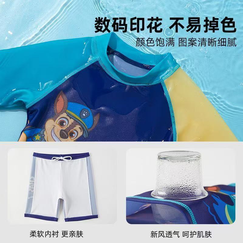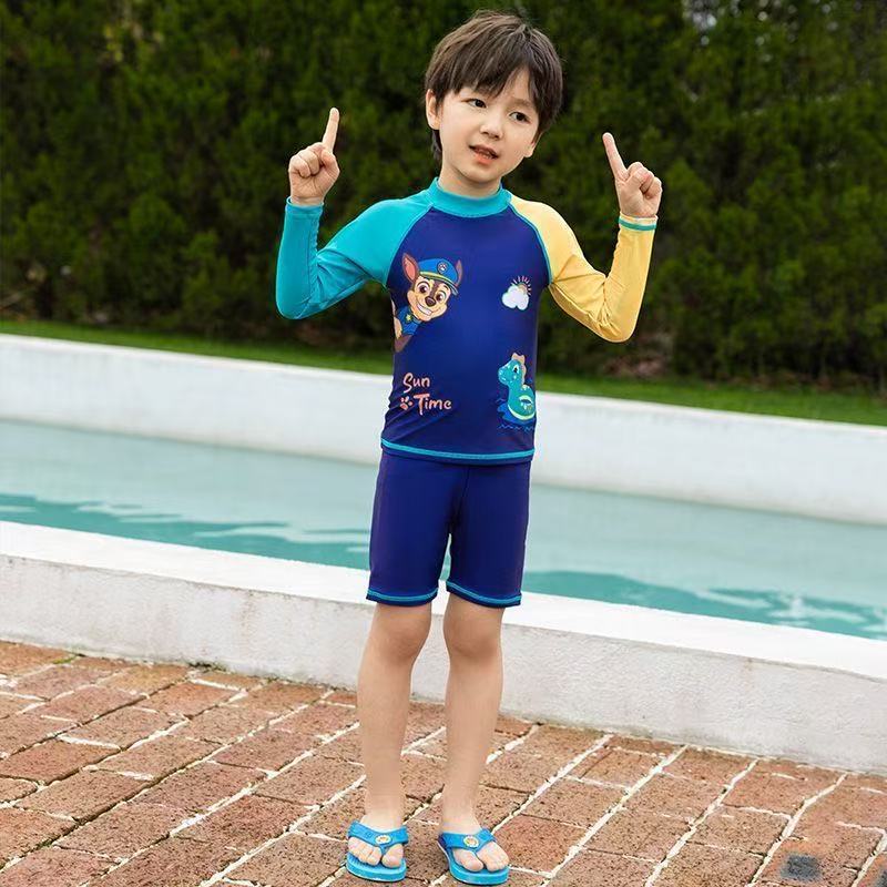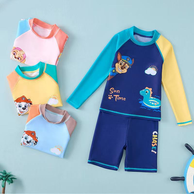 อุ้งเท้า ลาดตระเวน ชุดว่ายน้ําแยกแขนยาวสําหรับเด็กพร้อมหมวกว่ายน้ําชุดสองชิ้น2023ชุดว่ายน้ําแยกชุดน้ําพุร้อน