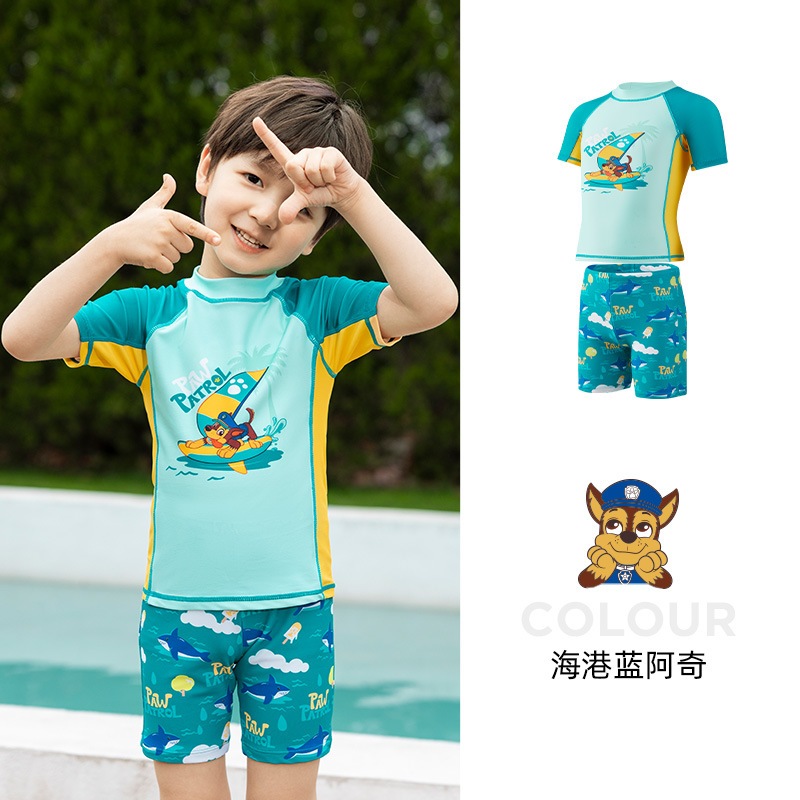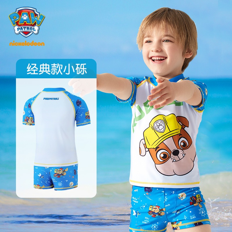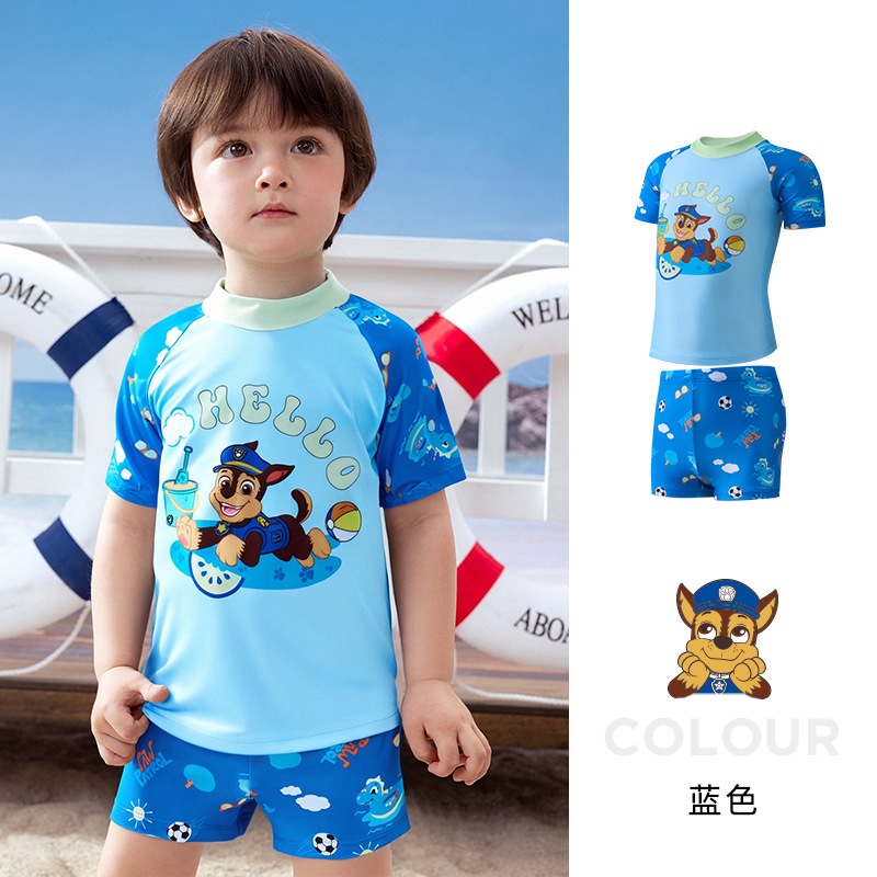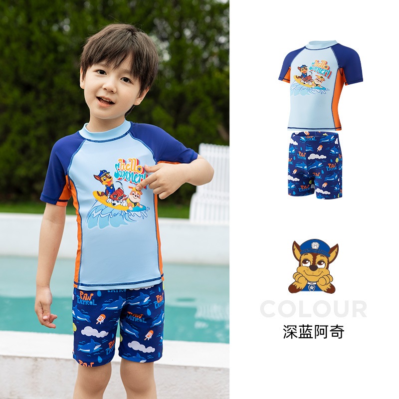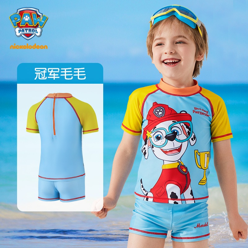 อุ้งเท้า ลาดตระเวน ชุดว่ายน้ําแยกแขนยาวสําหรับเด็กพร้อมหมวกว่ายน้ําชุดสองชิ้น2023ชุดว่ายน้ําแยกชุดน้ําพุร้อน