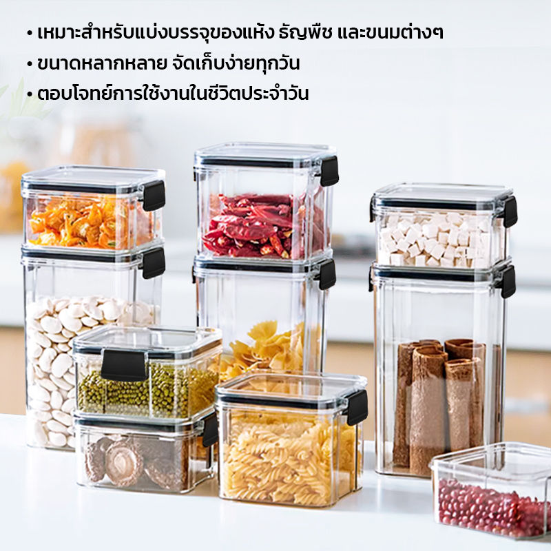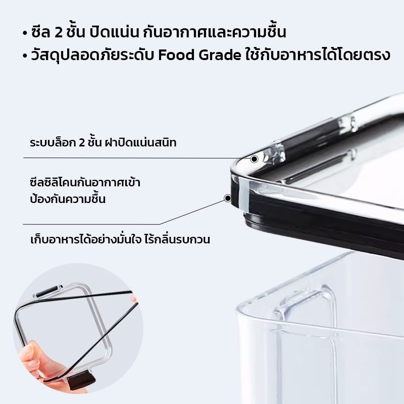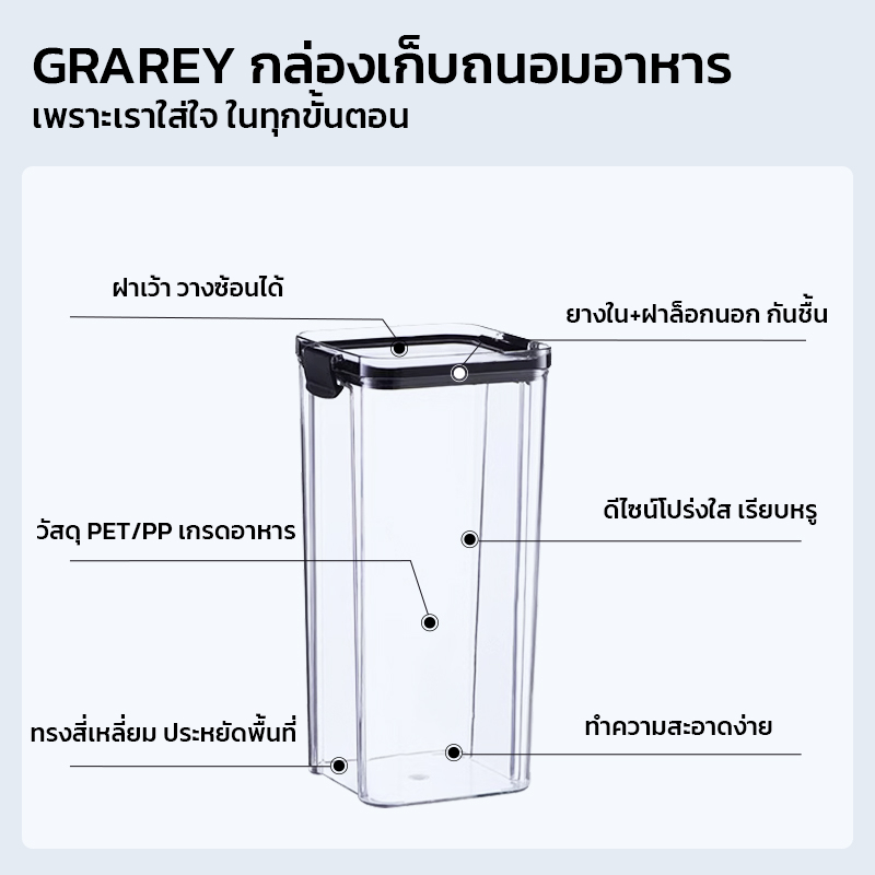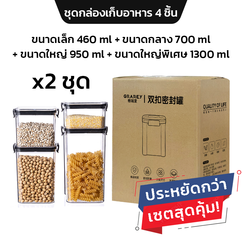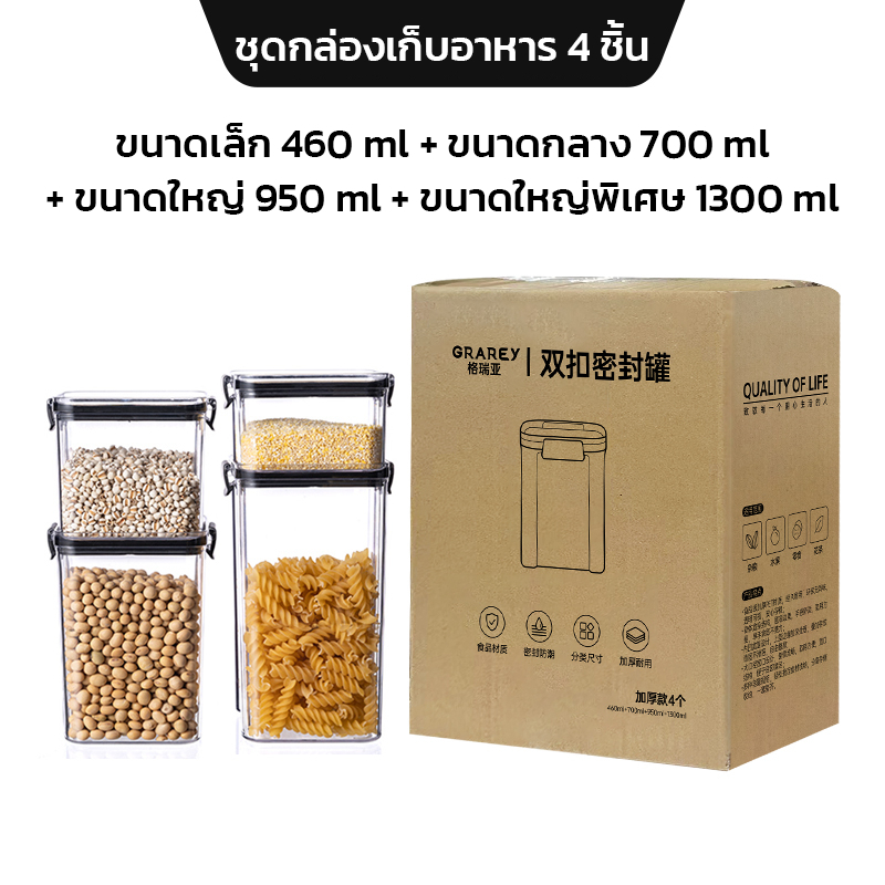 GRAREY กล่องเก็บอาหารสูญญากาศ ซีลล็อก 2 ชั้น (ชุด 4 ชิ้น) กันชื้น วางซ้อนได้ กล่องถนอมอาหาร