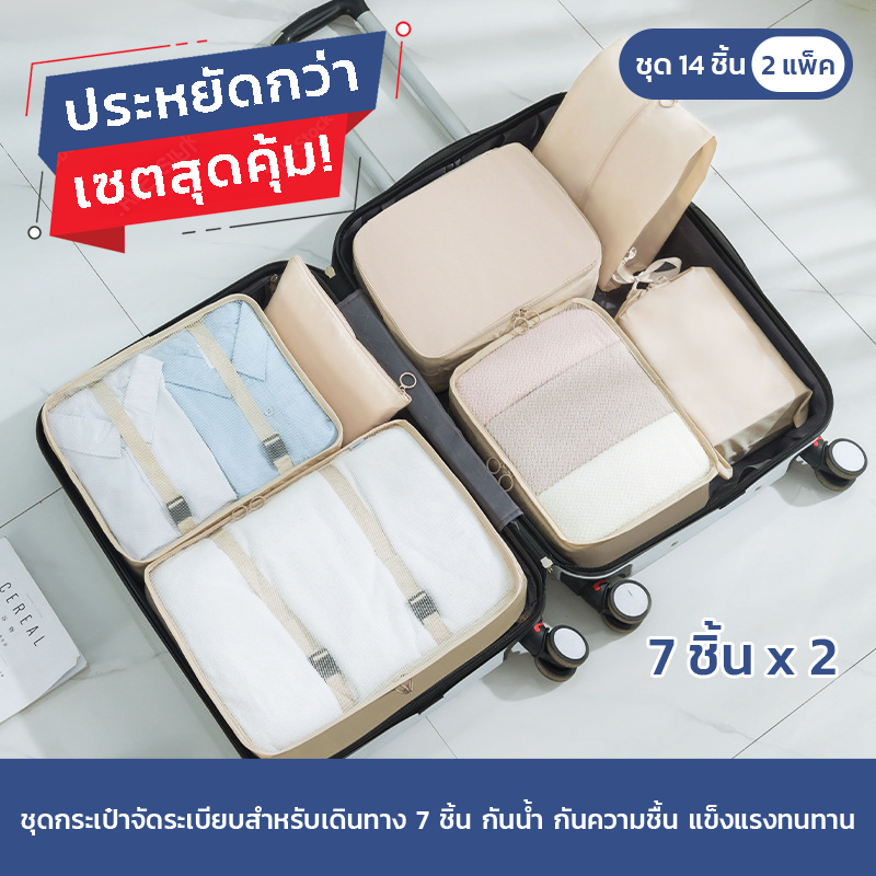 GRAREY ชุดกระเป๋าจัดระเบียบเดินทาง 7 ชิ้น กันน้ำ กระเป๋าเสื้อผ้า/รองเท้า กระเป๋าเดินทาง