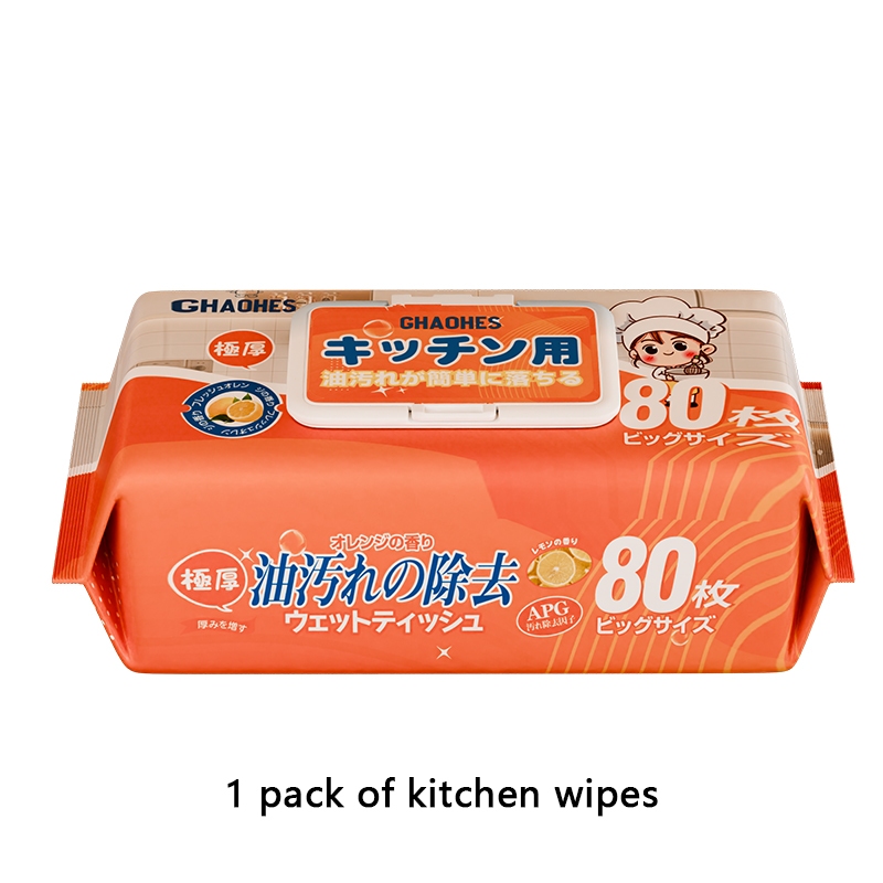 ทิชชู่เปียกทำความสะอาดครัว 80 แผ่น/แพ็ค ขจัดคราบมันด้วย APG ใช้ทำความสะอาดเตาไมโครเวฟและจาน ช่วยขจัดคราบได้ทันที