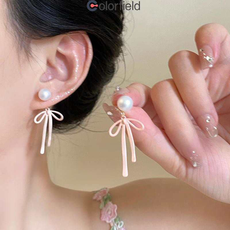 Colorfield ใหม่ ต่างหูมุก จี้ประดับโบว์ ล ะเอียดอ่อน เกาหลี ระดับไฮเอนด์ เครื่องประดับแฟชั่น สำหรับผู้หญิง ไม่ทําให้แพ้ง