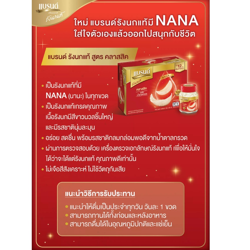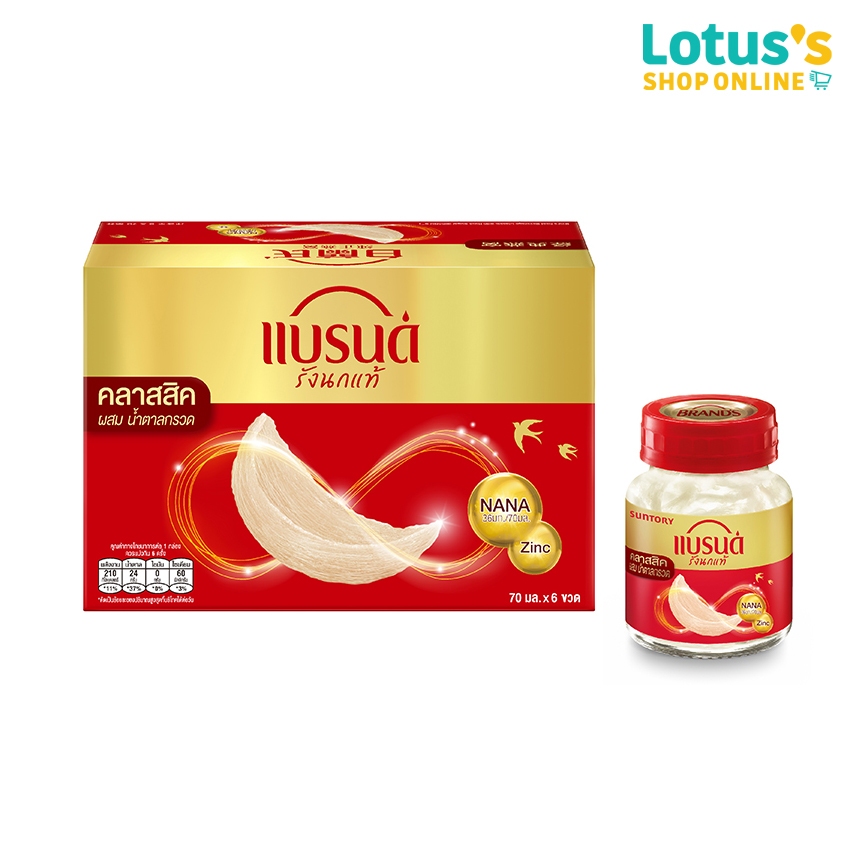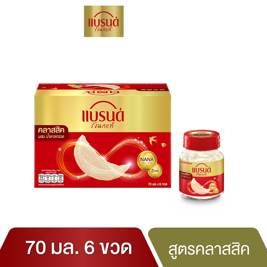 แบรนด์ รังนกแท้ สูตรคลาสสิค ผสมน้ำตาลกรวด 70 มล. (แพ็ค 6ขวด) BRANDS BIRD NEST CLASSIC 70ML. (pack 6 bottles)