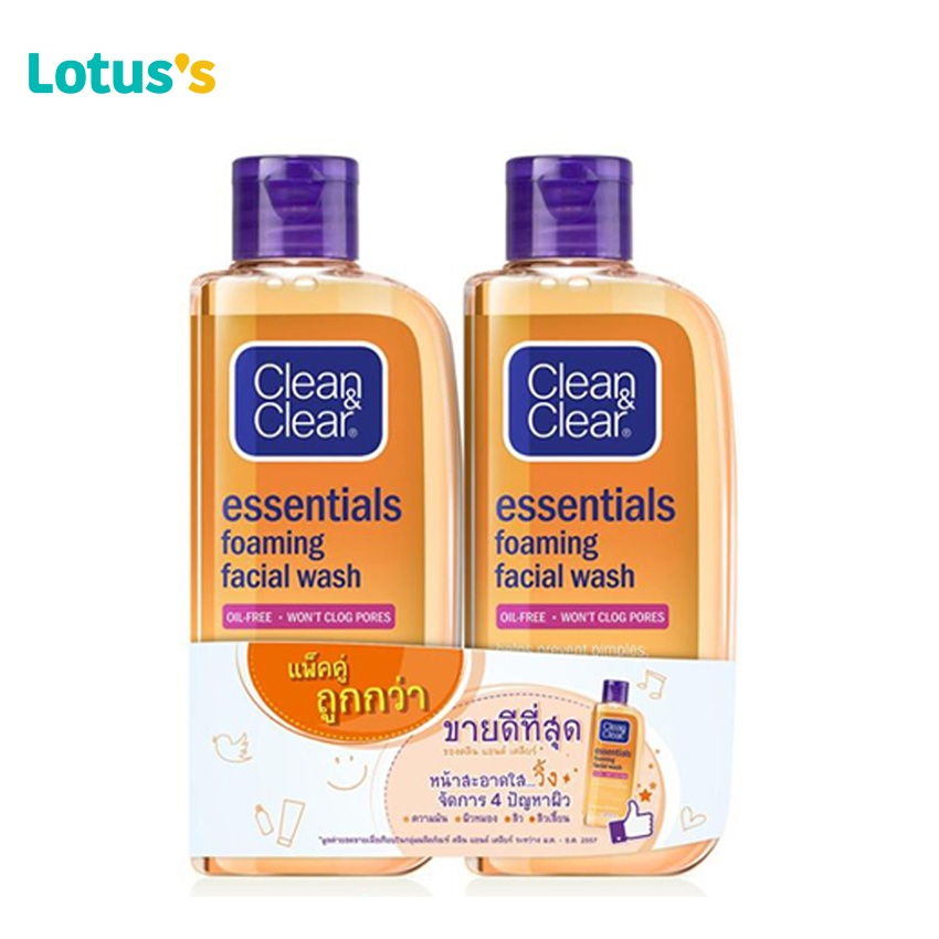 คลีน แอนด์ เคลียร์ เอสเซนเชียล โฟมมิ่ง เฟเชียลวอช ขนาด 100 มล. X 2 CLEAN & CLEAR ESSENTIAL FOAMING FACIAL WASH 100 ML.