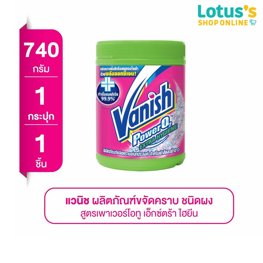 [ทั้งหมด 2 ชิ้น] แวนิช เอ็กซ์ตร้า ไฮยีน 740 กรัม VANISH EXTRA HYGIENE DETERGENT 740 G.