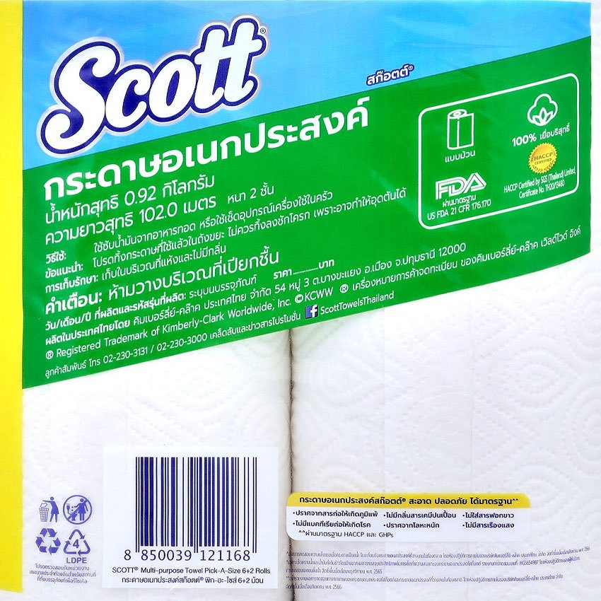 [ทั้งหมด 6 แพ็ค] สก็อตต์ กระดาษเอนกประสงค์ แบบม้วน (แพ็ค 6 ม้วน) SCOTT MULTI-PURPOSE PAPER (PACK 6 ROLLS)