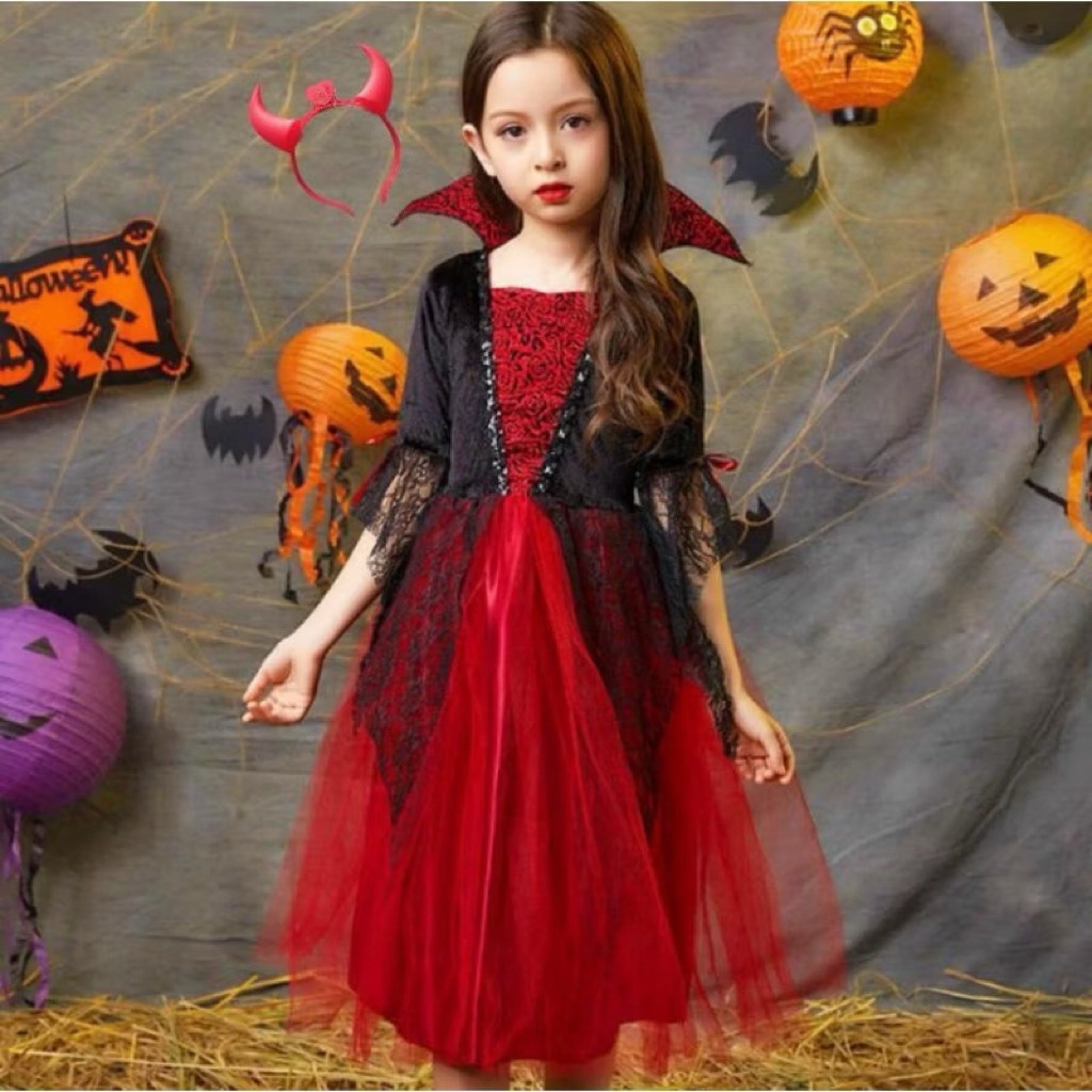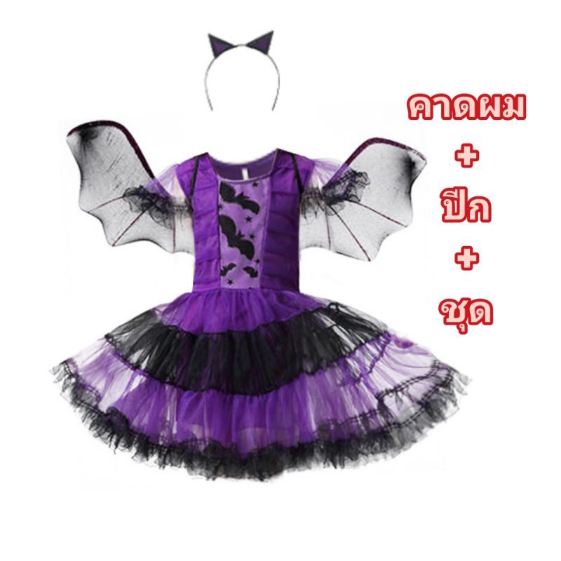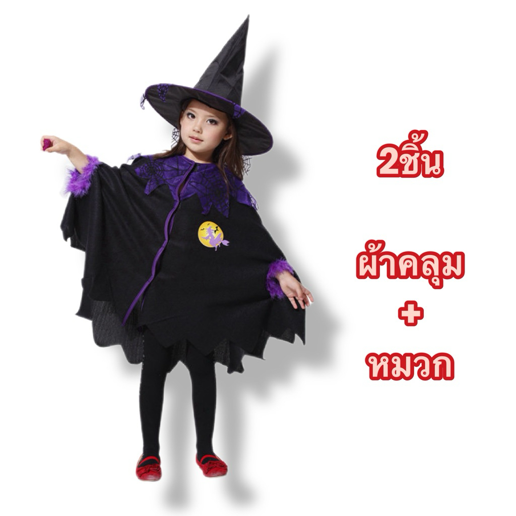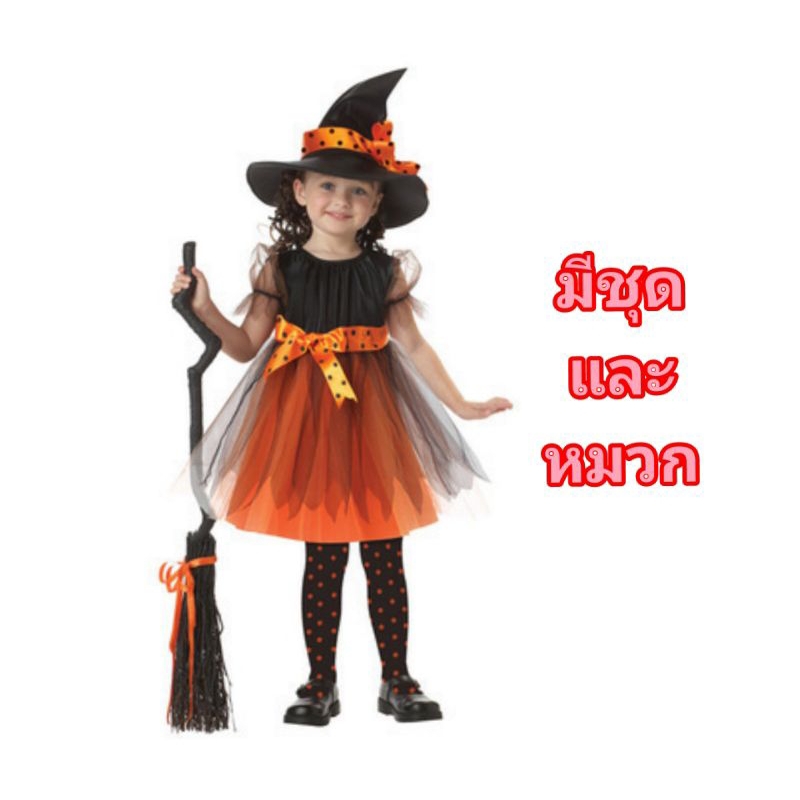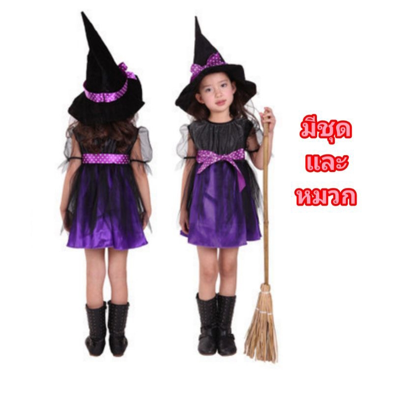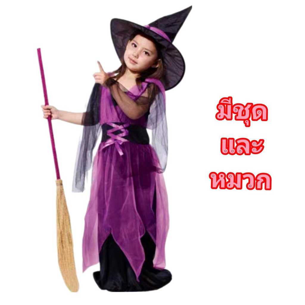 (พร้อมส่งสินค้าอยู่ไทย) ชุดฮาโลวีนเด็ก ชุดแม่มด Halloween มีหมวก