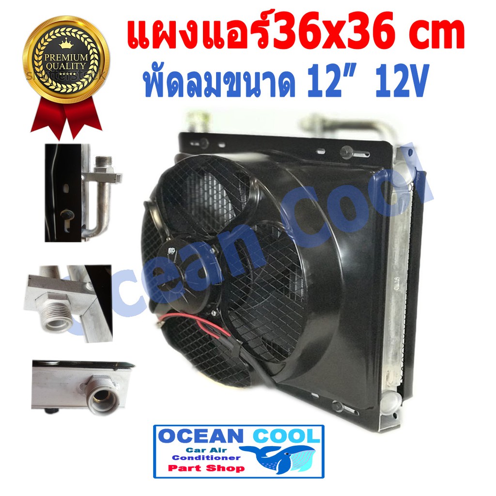 แผงแอร์ พาราเรล 36X36 cm หนา 26 mm โอริง Oring R134a พร้อมพัดลม 12 นิ้ว 12 V Condenser CD0008